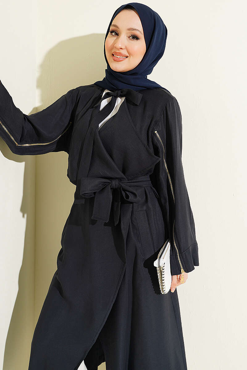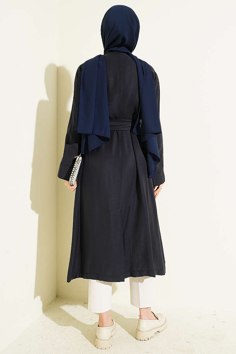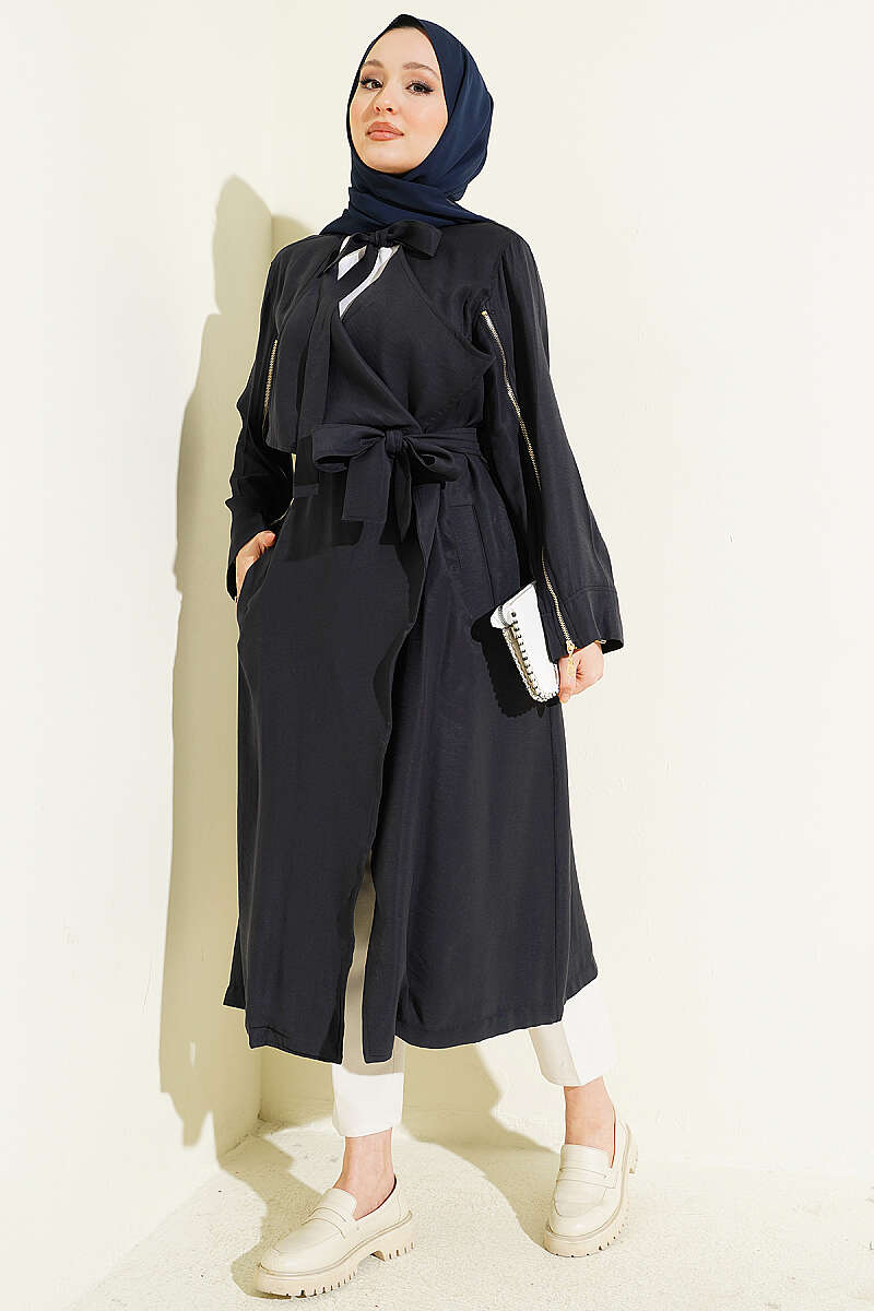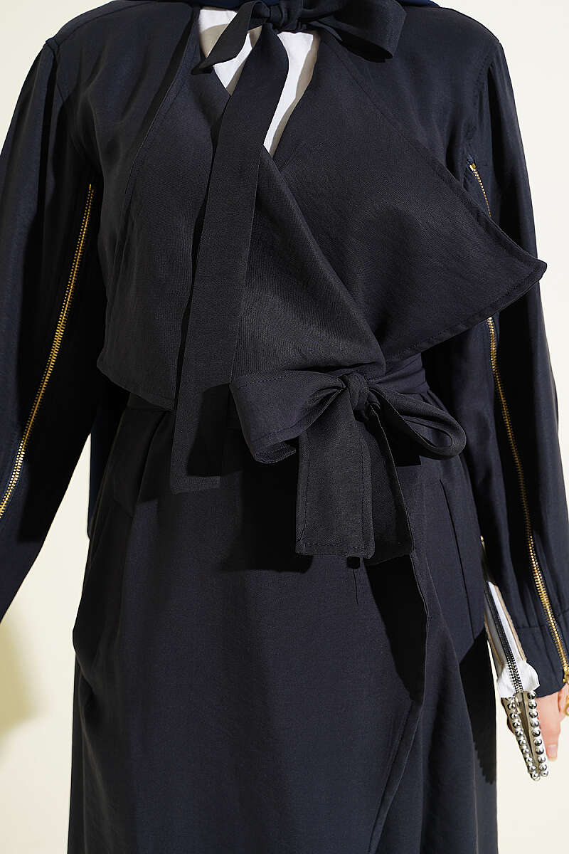 Kolu Fermuarlı Tensel Trençkot Lacivert