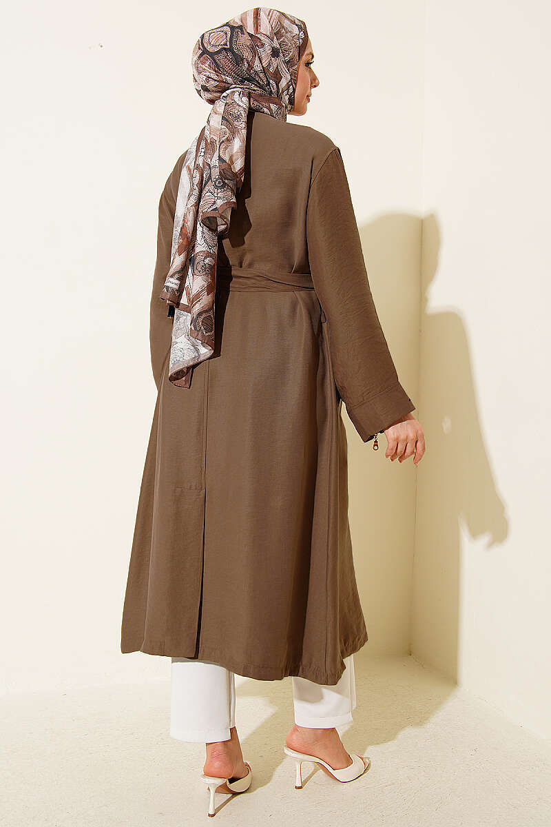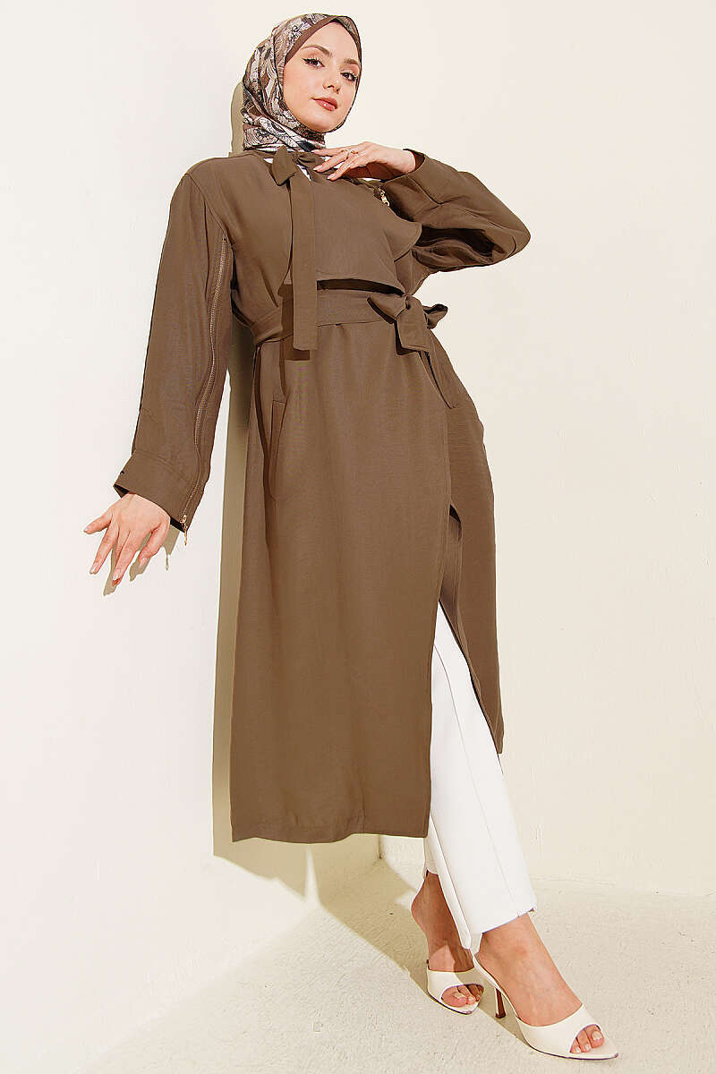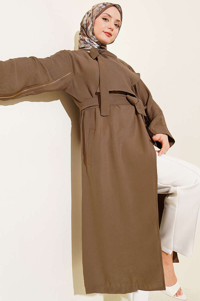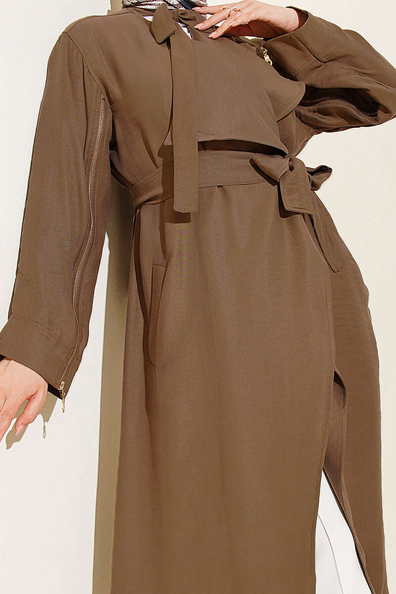 Kolu Fermuarlı Tensel Trençkot Vizon