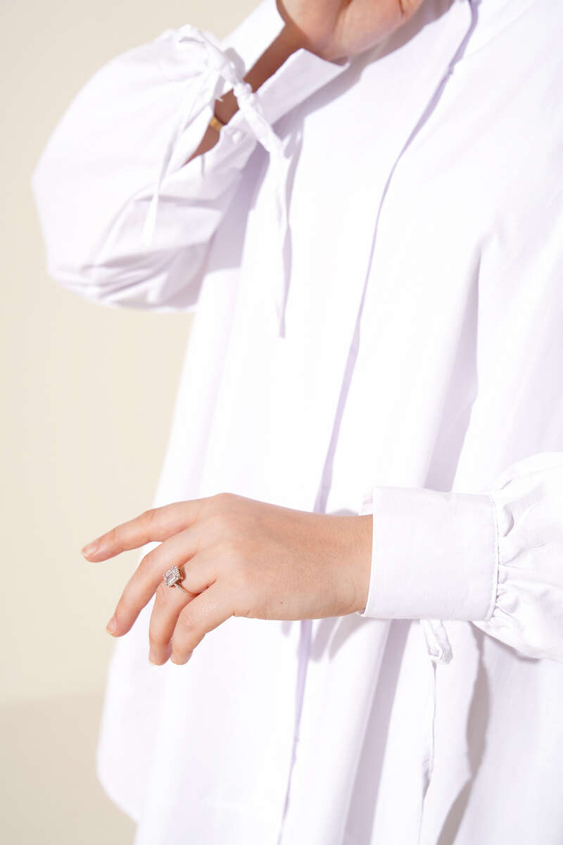 Yeni sezon tuniğimiz salaş görünümüyle sportif şıklığı sizlere sunmaktadır. Tuniğimizin bilekleri ip bağlamalıdır. Yan tarafında yırtmacı bulunan gömleğimiz tasarımıyla dikkat çekmektedir.