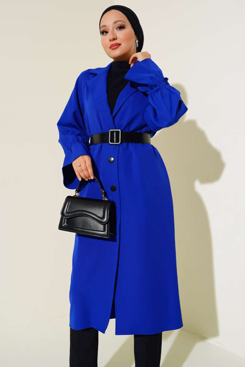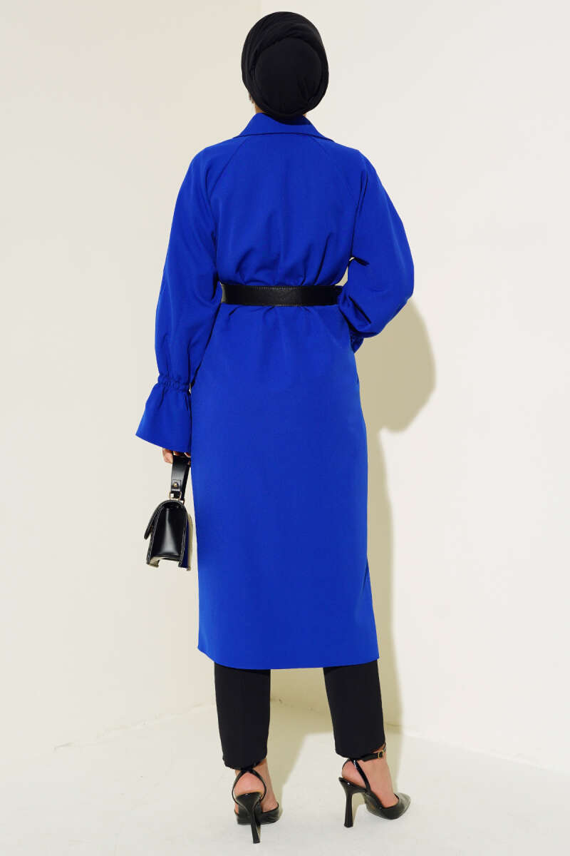 Kuşaklı Süet Trençkot Zümrüt Yeşili