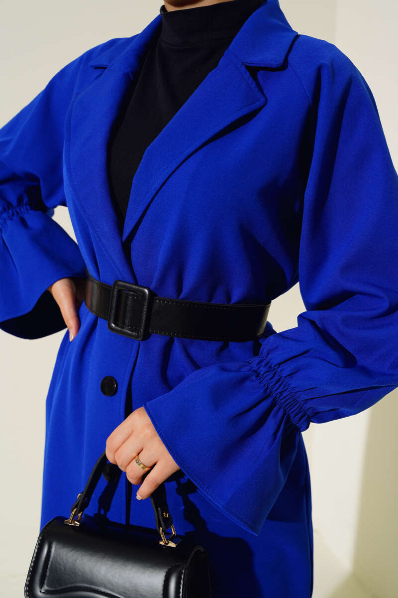 Önü Kurdeleli Buklet Ceket Füme
