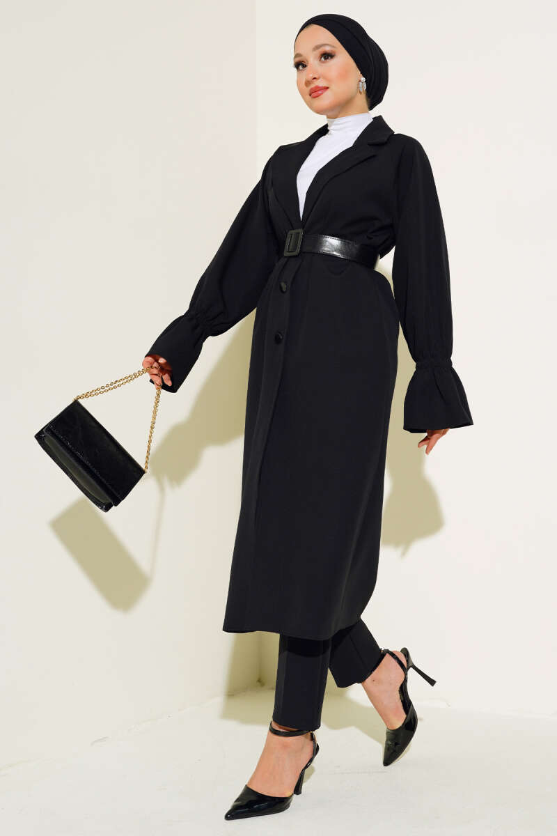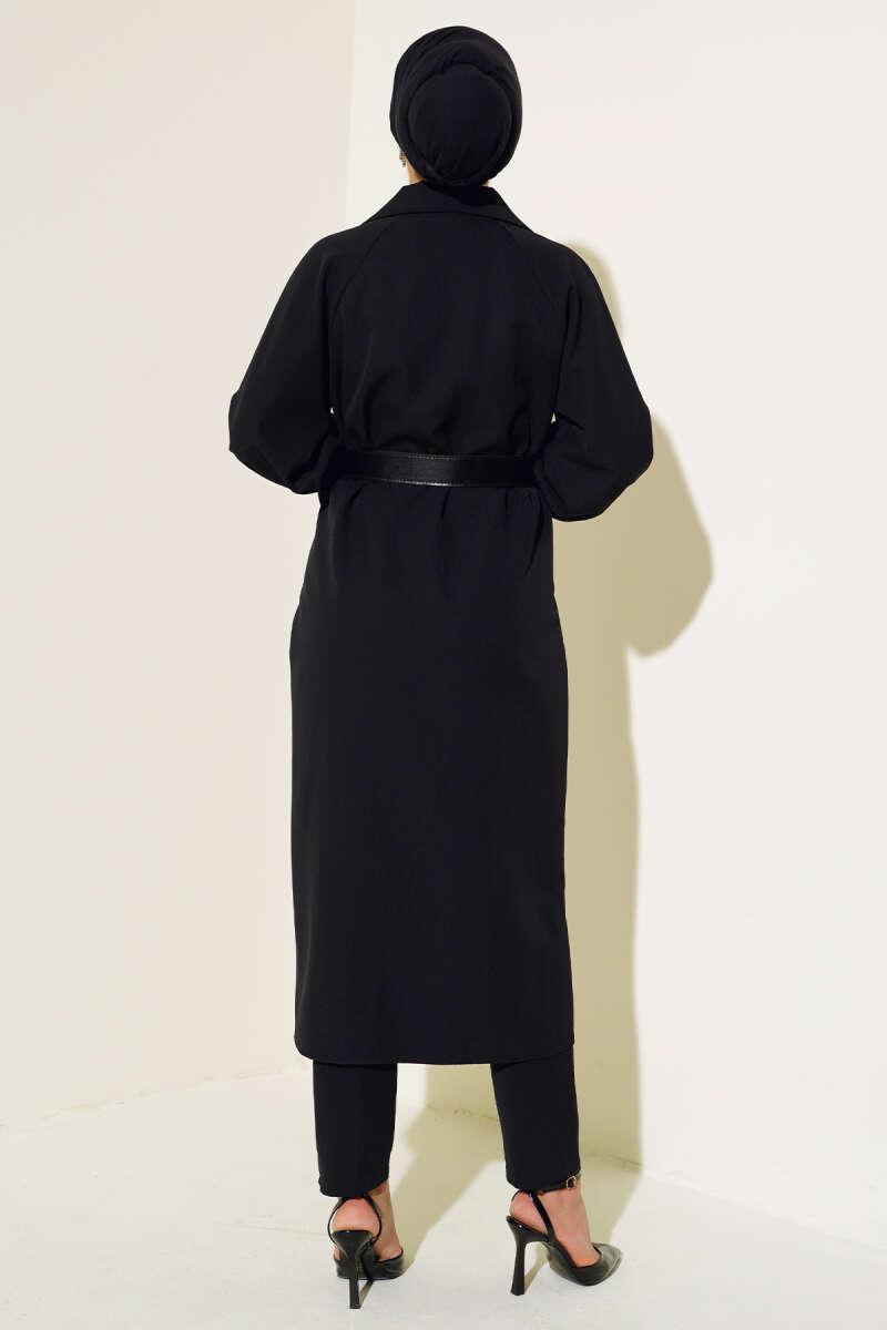 Kuşaklı Süet Trençkot Zümrüt Yeşili
