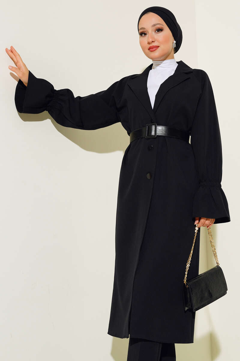 Beli Büzgülü Kapşonlu Trençkot Taba