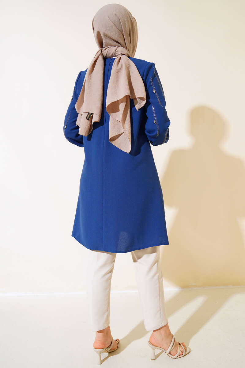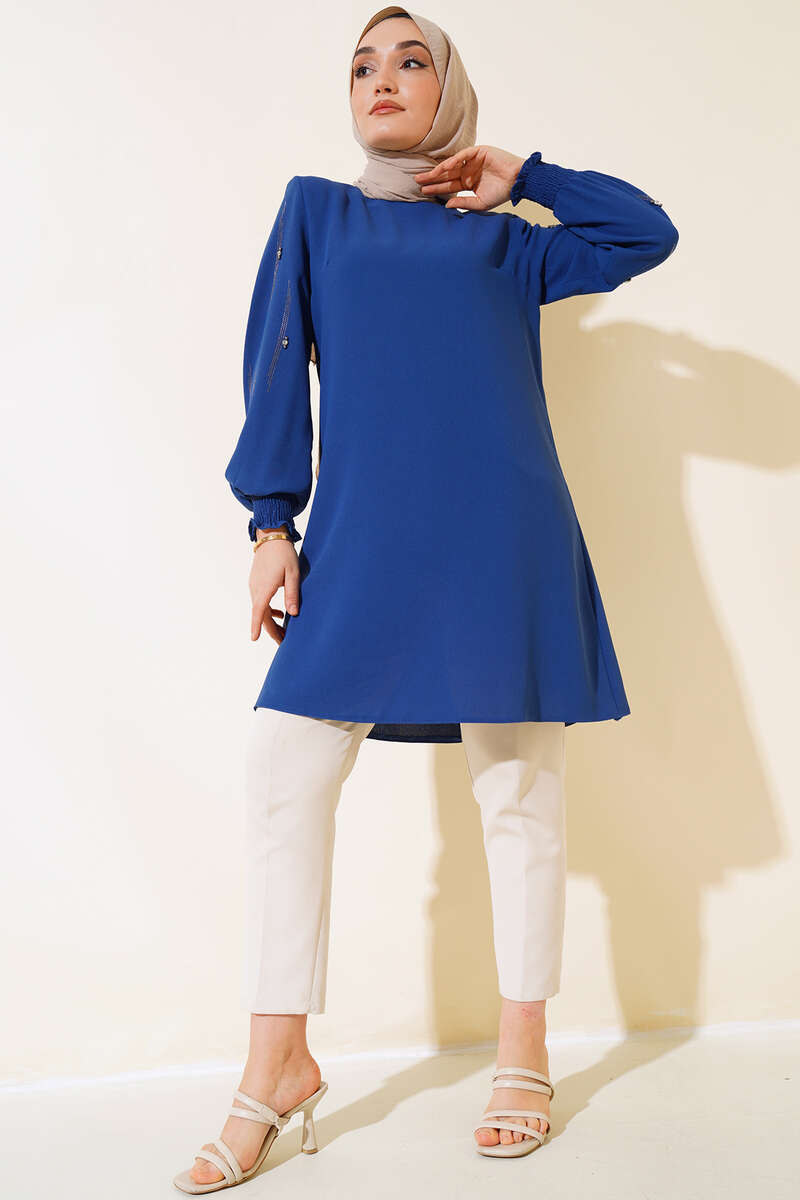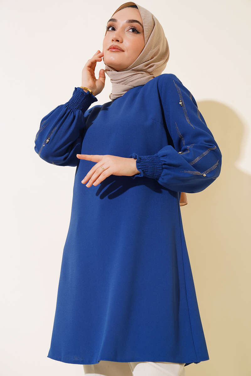 Yeni sezon tunik modelimiz sizlerle beraber. Tuniğimizin kolları taş süslemelidir. Kol bilekleri gipelidir. Tuniğimizin sırtı fermuarlıdır. Şık ve modern tunik modelimiz özel günlerinizin favori parçası olacaktır. Renk seçenekleri mevcuttur.