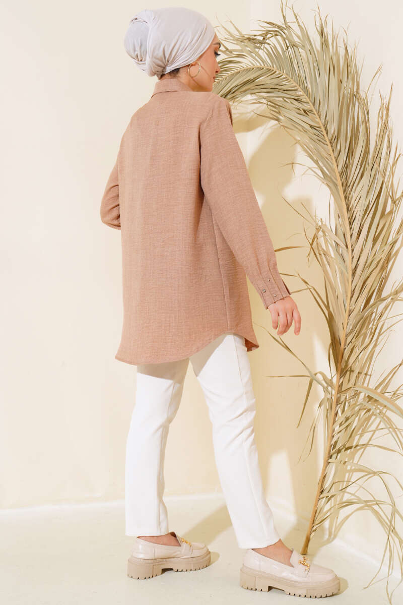 Bel : 100 cmYeni sezon gömleğimiz sizlerle beraber. Kol bilekleri taşlı olup hareketlilik ve şıklık kazanmıştır. Önü boydan düğmelidir. Şık gömlek modelimizin renk seçenekleri mevcuttur.Kumaş Bilgisi% 70 Polyester%30 CottonModel BilgisiBoy: 162 cmGöğüs: 82 cmBel: 65 cmKalça: 95 cmModelin üzerindeki ürün - 38- bedendir.