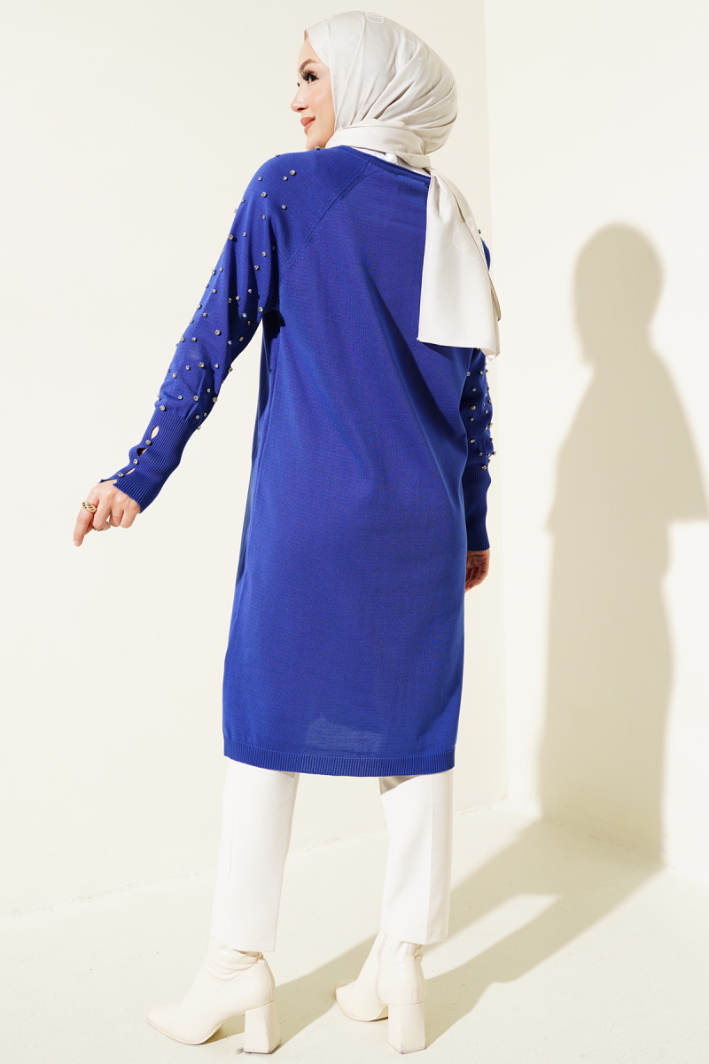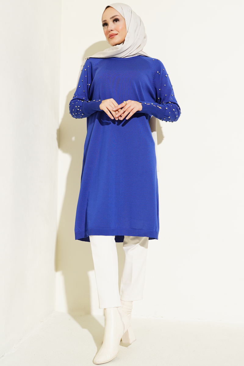 Kolu Taşlı Uzun Triko Tunik Kahve
