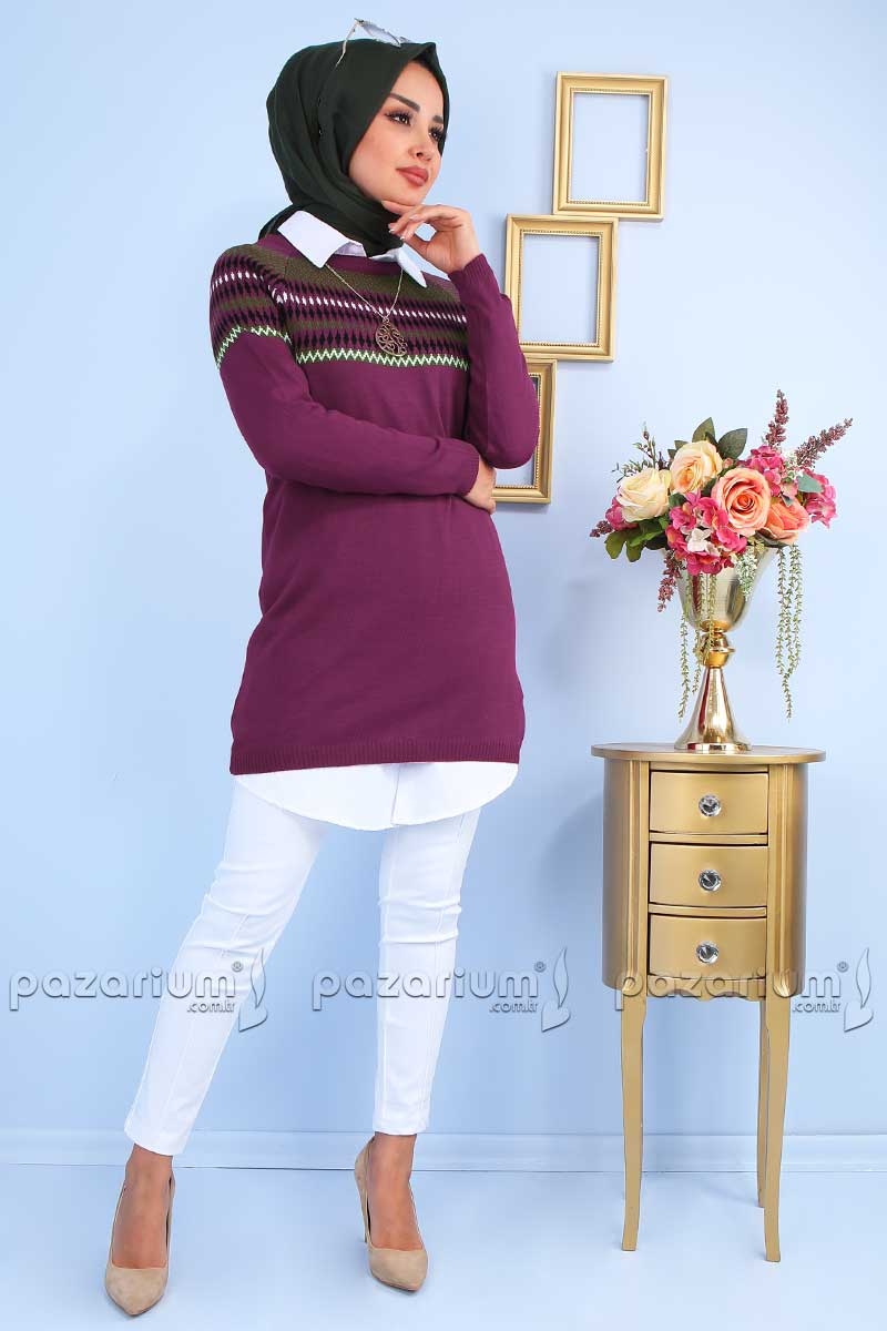 4'lü Kolye Hediyeli Kombin - Mürdüm - 74,60 TL Yerine 49,90 TL