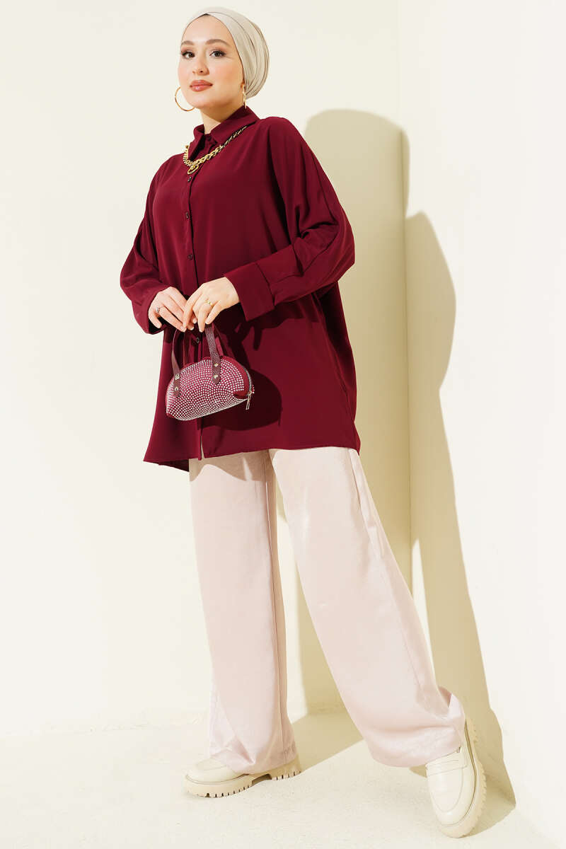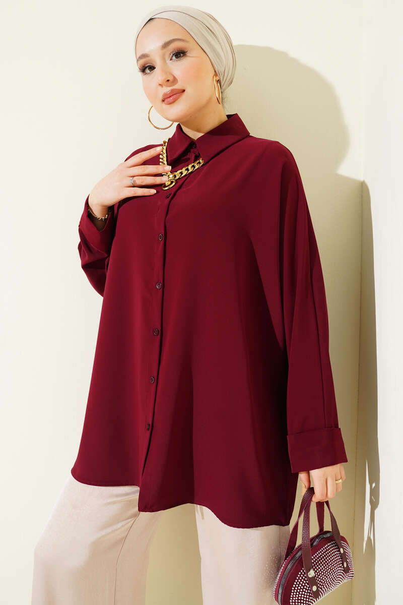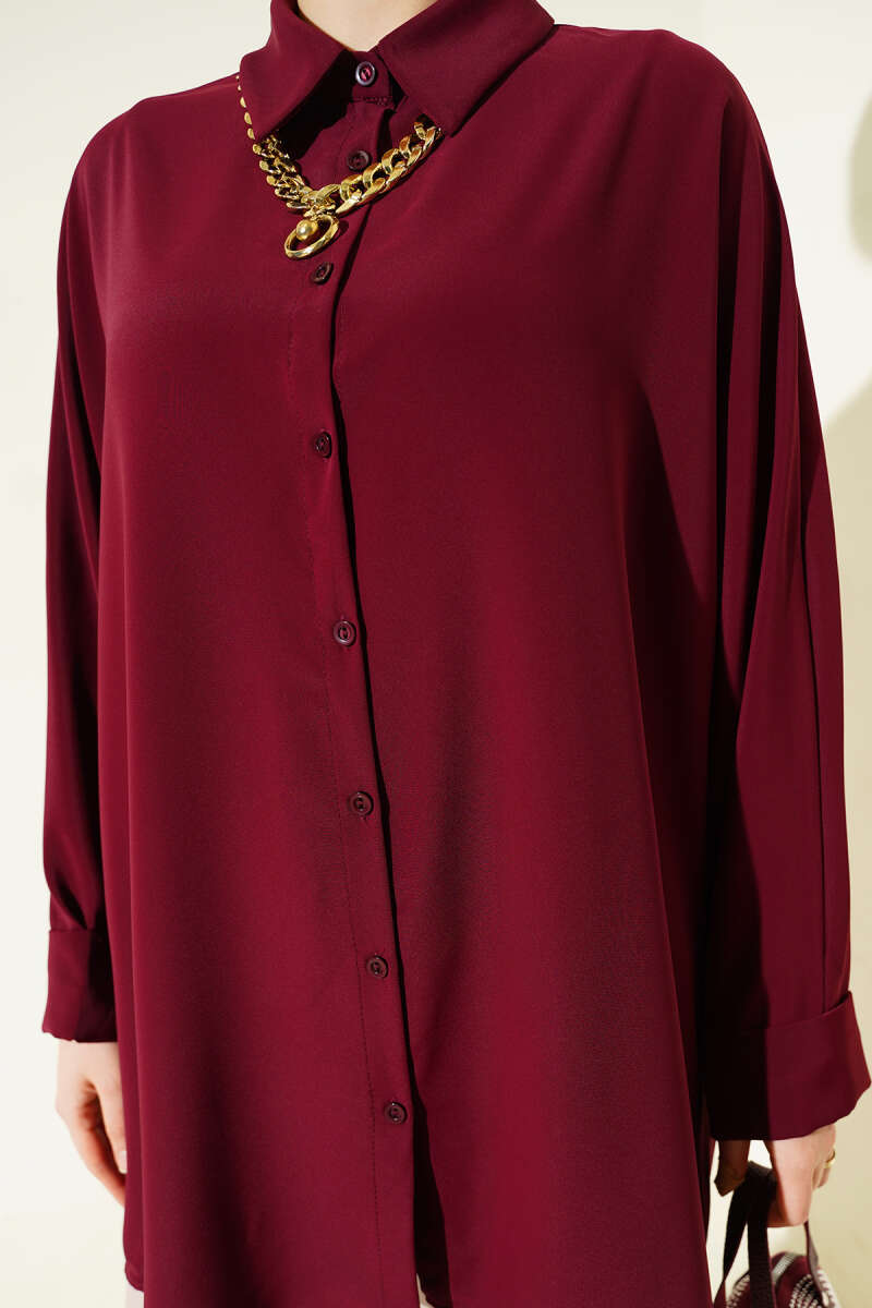 Kolyeli Yarasa Kol Salaş Gömlek Kırmızı