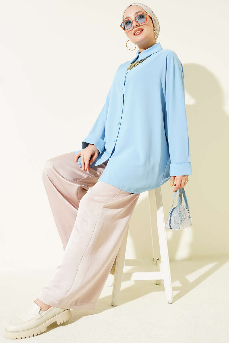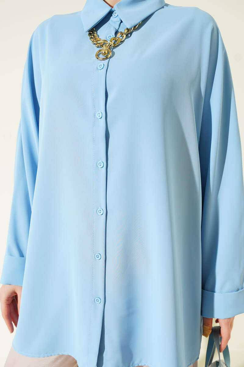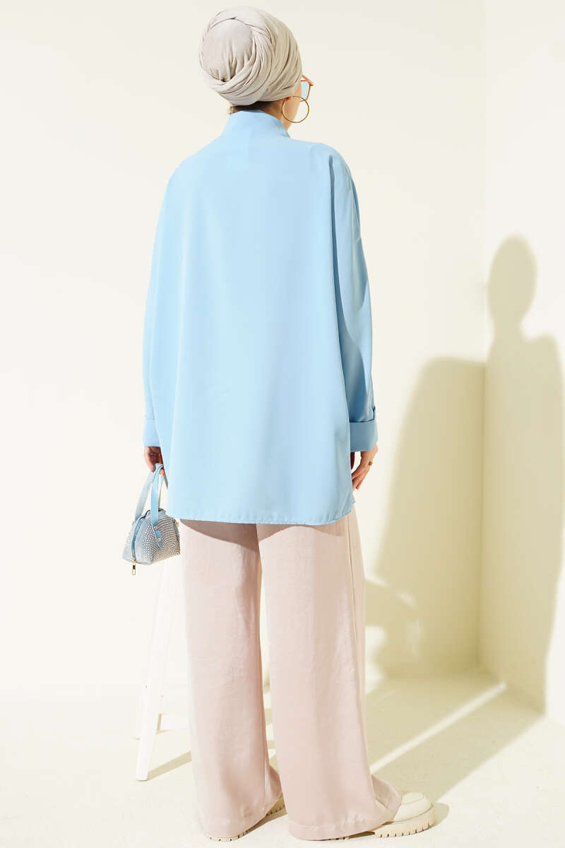 Kolyeli Yarasa Kol Salaş Gömlek Mavi