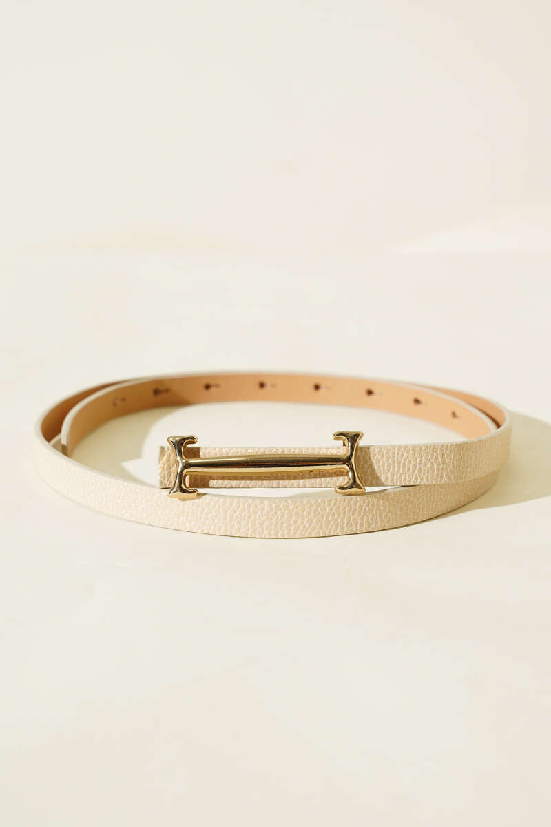 Metal Dikdörtgen Tokalı İnce Kemer Taba