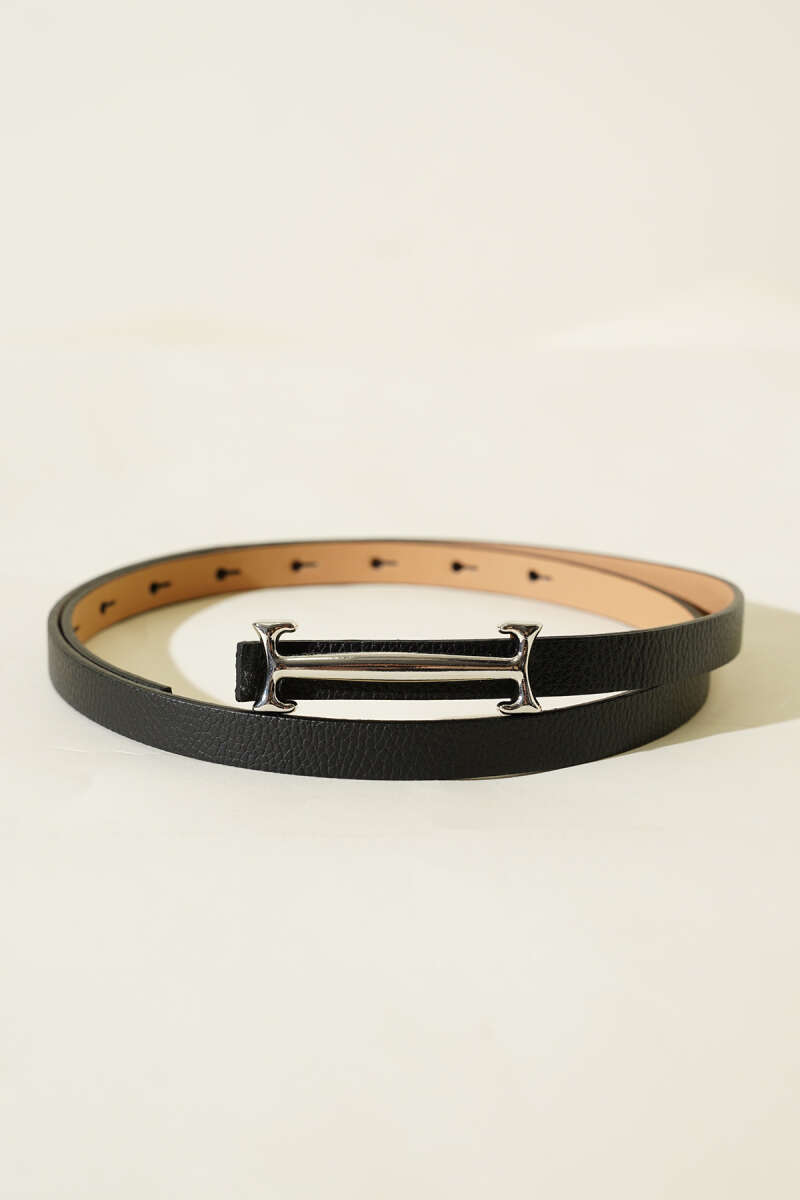 Köprü Tokalı İnce Kemer Siyah Gümüş