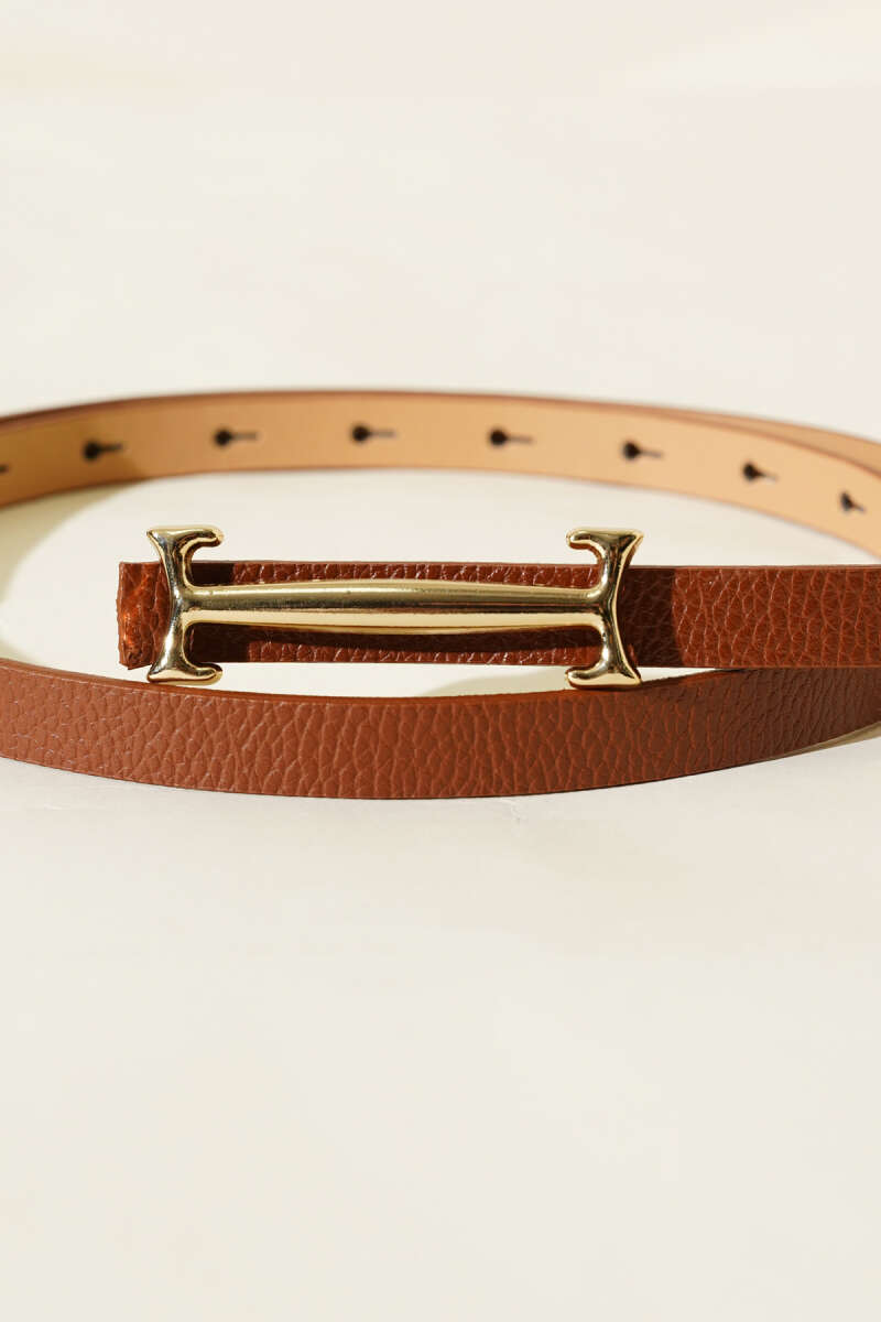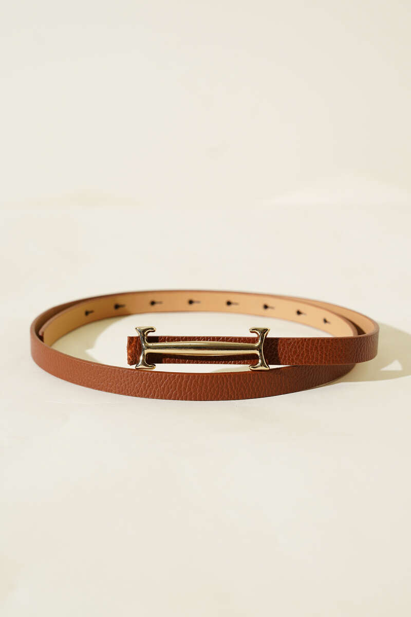 Metal Dikdörtgen Tokalı İnce Kemer Taba