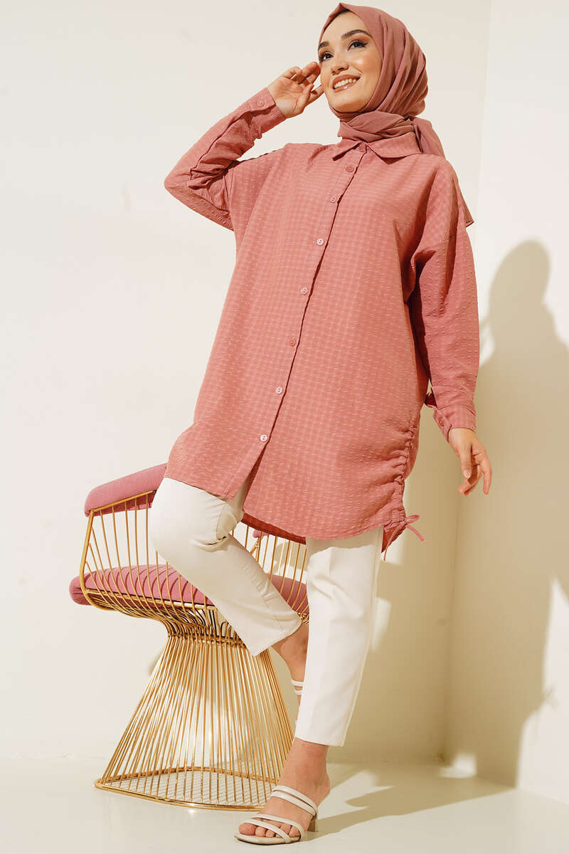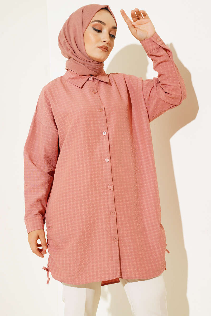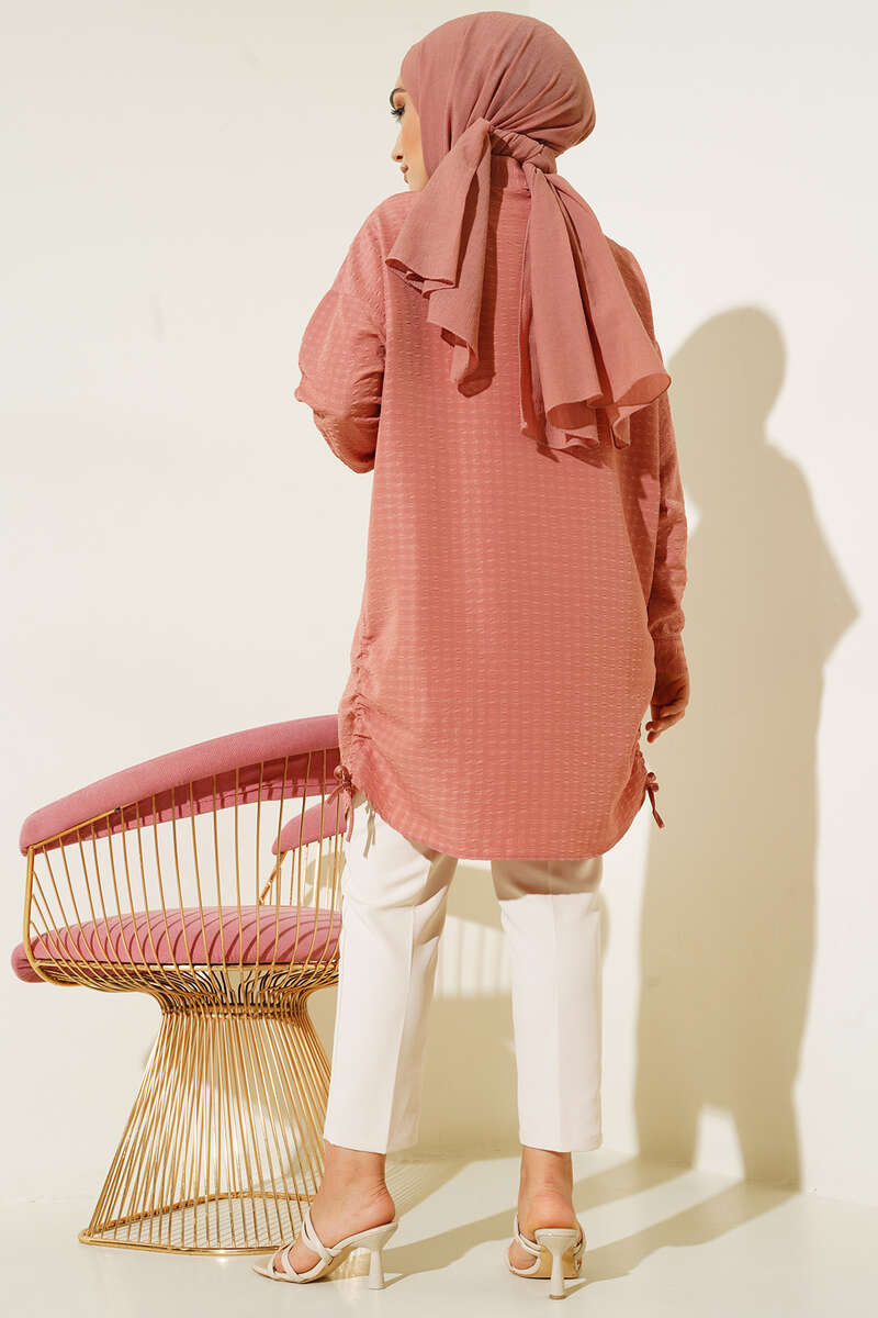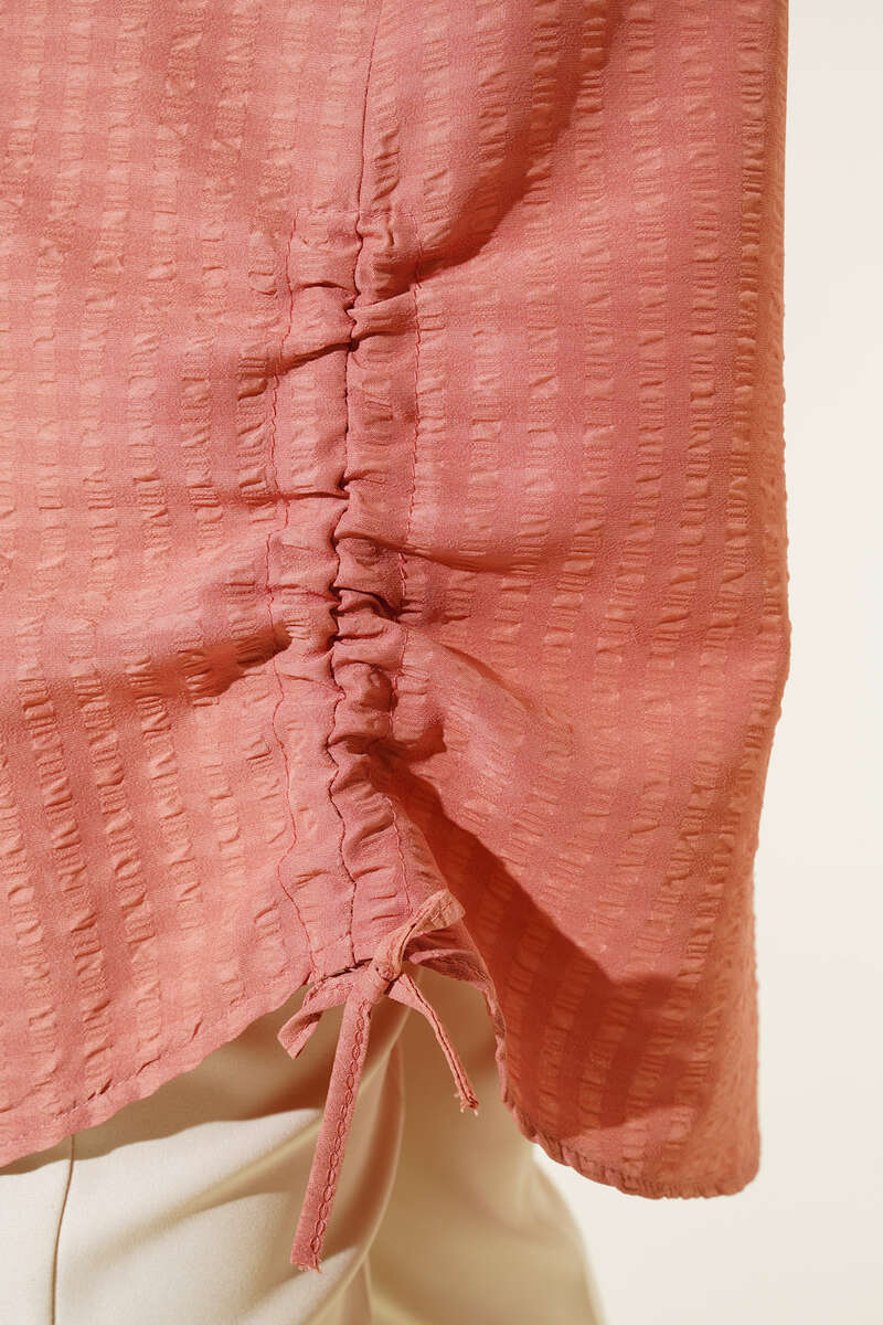 Körüklü Ağaç Kabuğu Büzgülü Gömlek Gül Kurusu