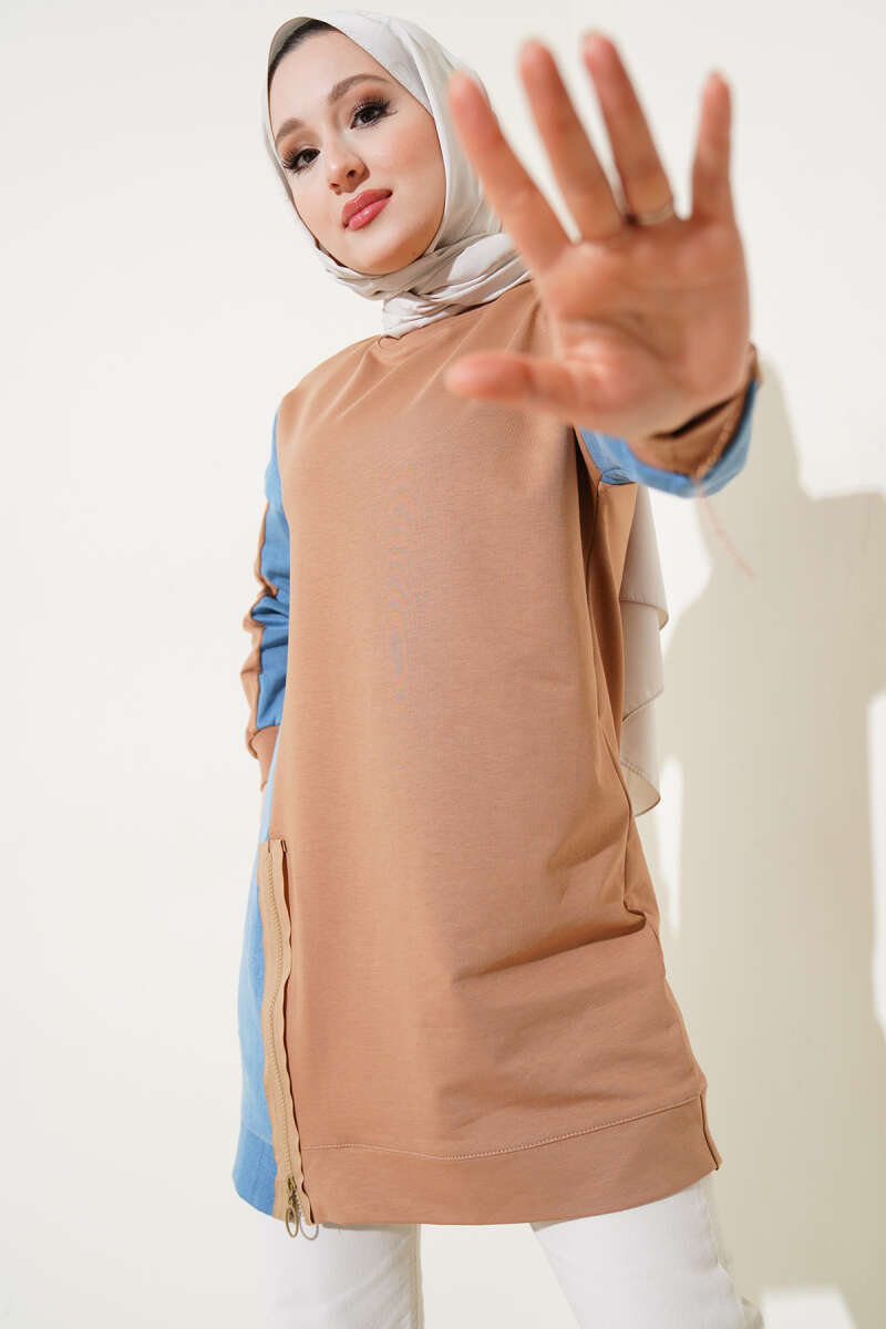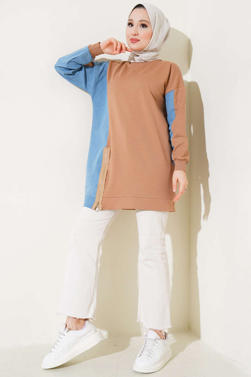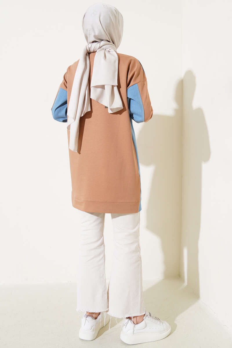 Kürk Cepli Scuba Tunik Kahve