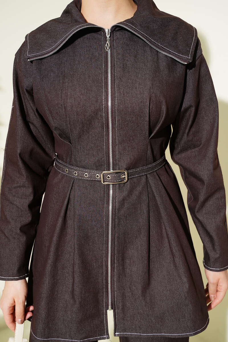 Düğmeli Sakallı Kısa Ceket Kahve
