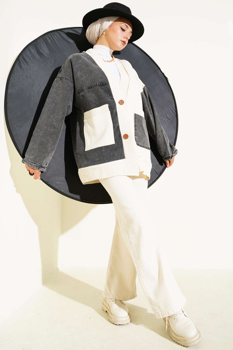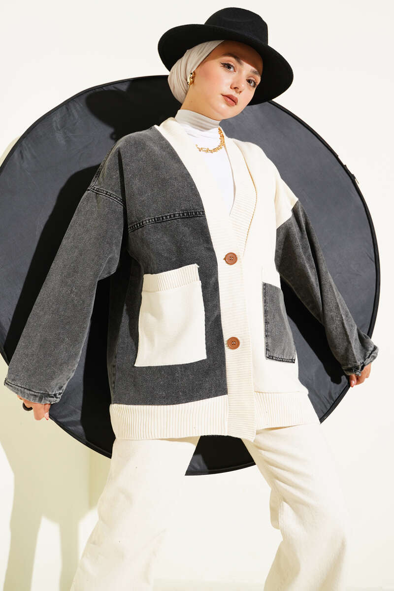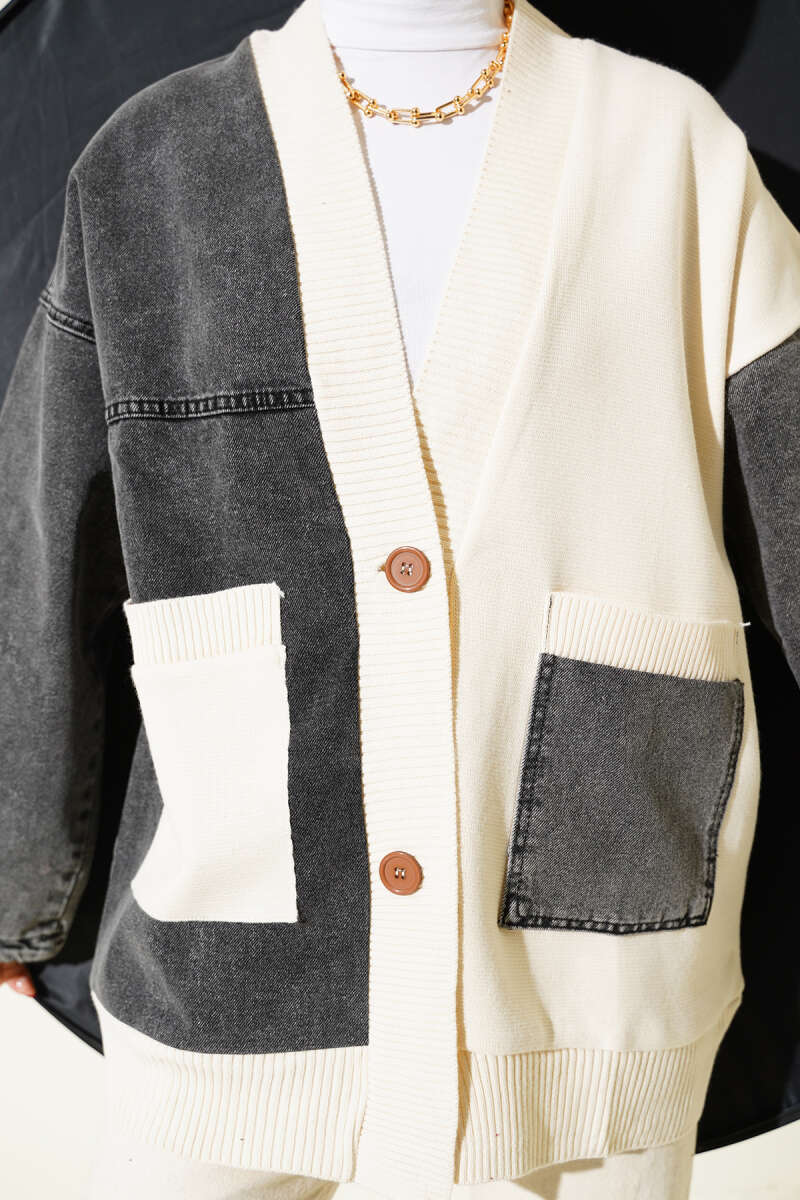 Yandan Dikişli Bağcıklı Hırka Ekru