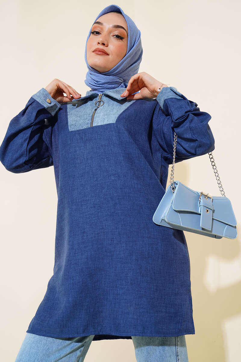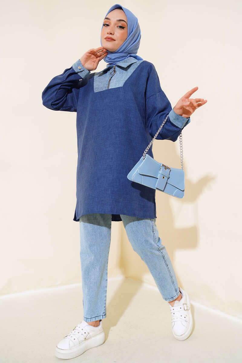 Yeni sezon ikili takım modelimiz sizlerle beraber. Tuniğimiz kot garnilidir. Kol bilekleri manşetli ve düğmelidir. Etek ucu yırtmaçlıdır. Tuniğimiz gömlek yaka olup, yarım fermuarlıdır. Pantolonumuzun beli lastiklidir. İki adet cebi vardır. Dar paçadır. Sade ve sportif ikili takımımız dolabınızdaki yerini bekliyor.