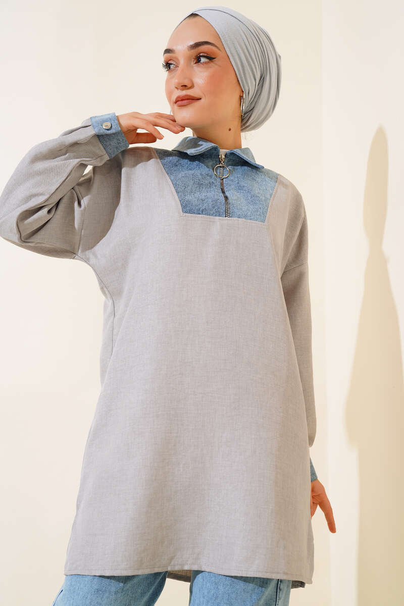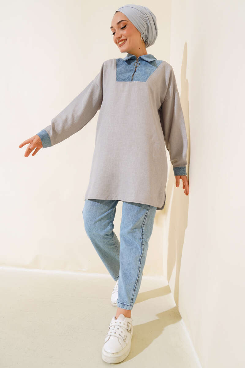 Yeni sezon ikili takım modelimiz sizlerle beraber. Tuniğimiz kot garnilidir. Kol bilekleri manşetli ve düğmelidir. Etek ucu yırtmaçlıdır. Tuniğimiz gömlek yaka olup, yarım fermuarlıdır. Pantolonumuzun beli lastiklidir. İki adet cebi vardır. Dar paçadır. Sade ve sportif ikili takımımız dolabınızdaki yerini bekliyor.