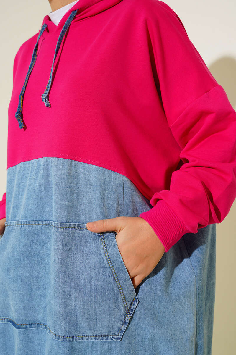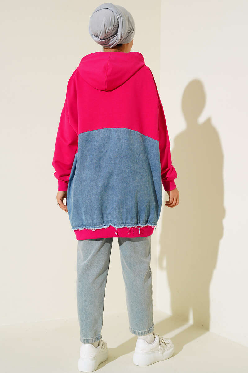 Kot Garnili Kapüşonlu Tunik Fuşya