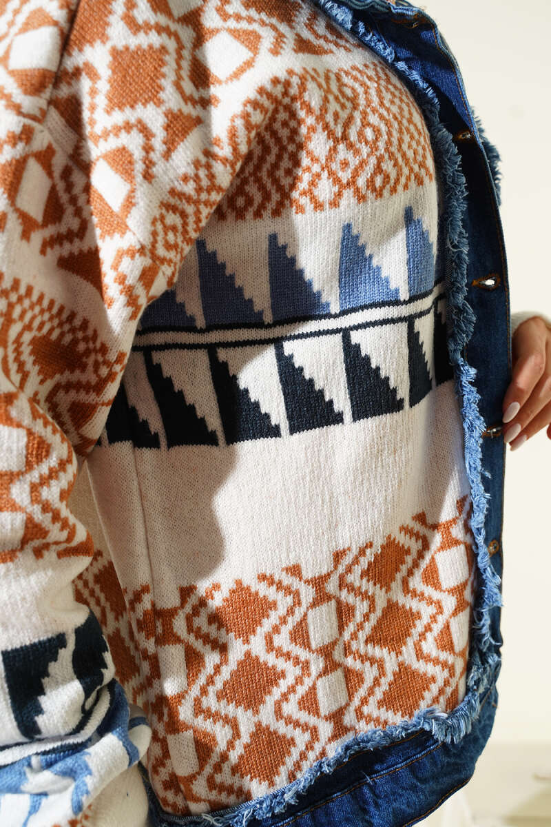 Dalga Desen Çıtçıtlı Ceket Lacivert