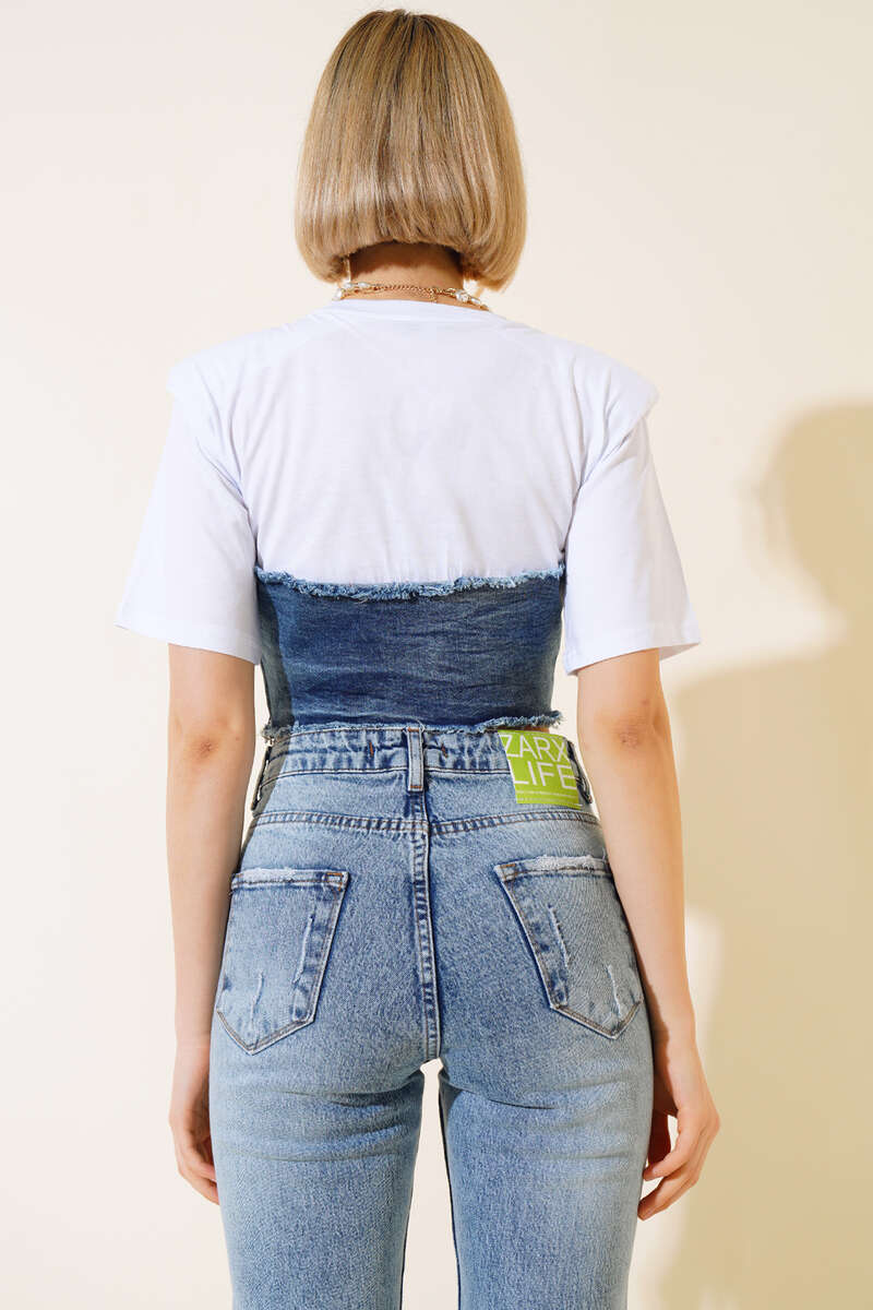 Yeni sezon t-shirt modelimiz sizlerle beraber. T-shirt modelimizin beli kot garnilidir. Kısa koldur. T-shirt modelimizin omuzları vatkalıdır. Belinin bir tarafı fermuarlıdır. Hem şık hem sportif tasarımıyla favoriniz olacak.