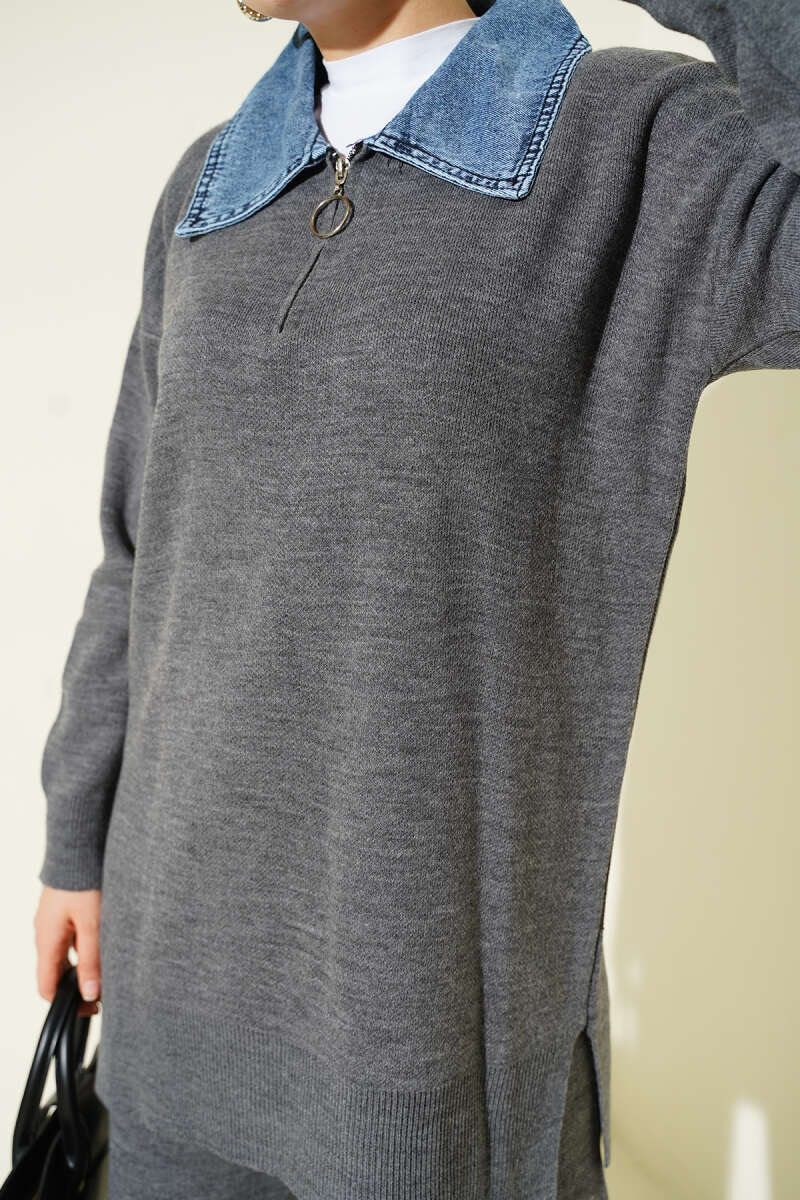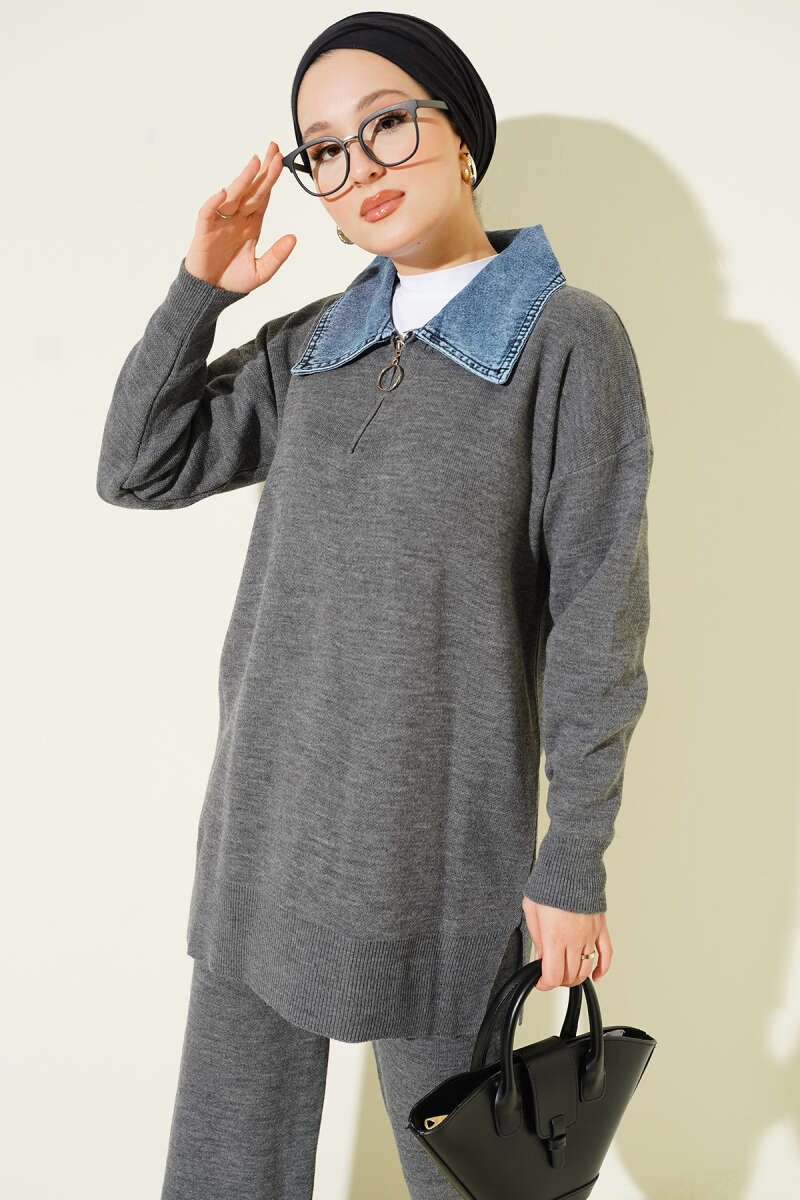 Pelerin Detaylı Uzun Tunik İkili Takım Latte