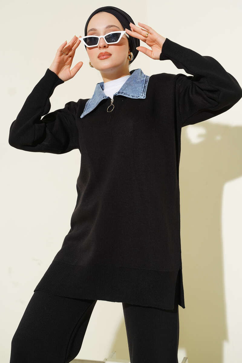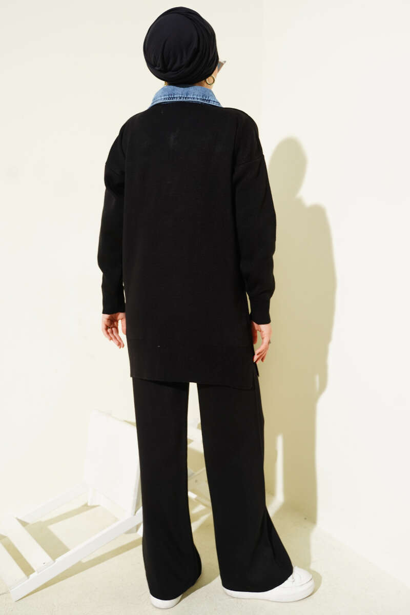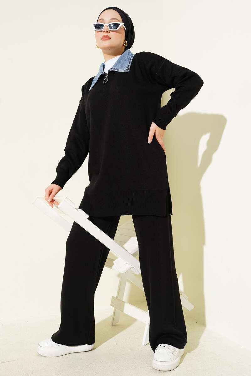 Önü Fırfırlı Taş Detaylı İkili Takım Kahve