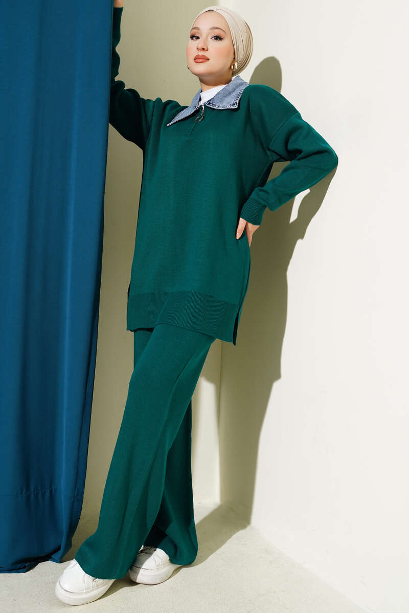 Dikiş Detaylı Basic Triko İkili Takım Vizon