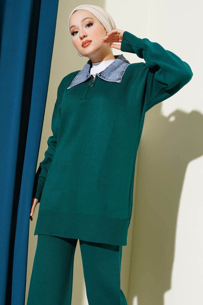 Kapüşonlu Fermuarlı Kot İkili Takım Kot