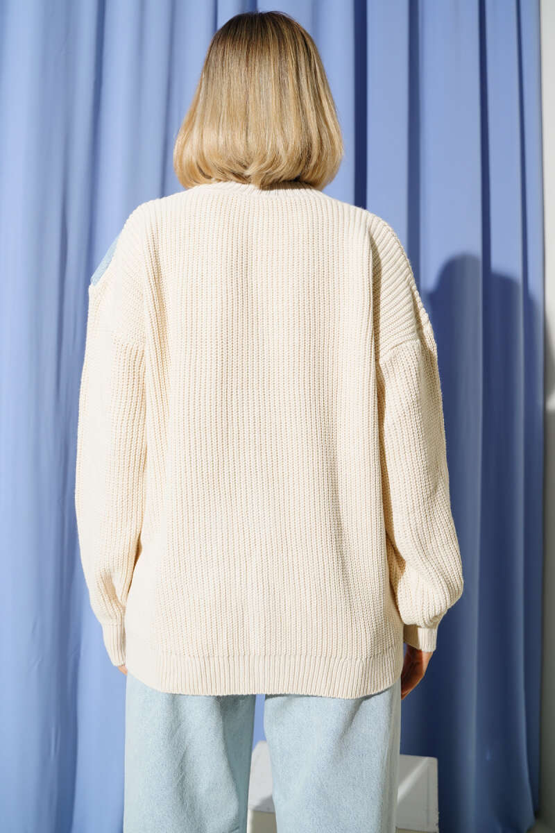 Yaka Düğmeli Baskılı Sweatshirt Lacivert