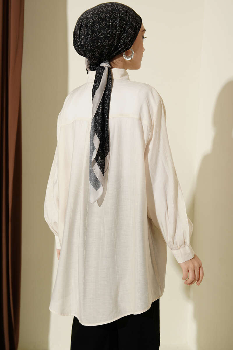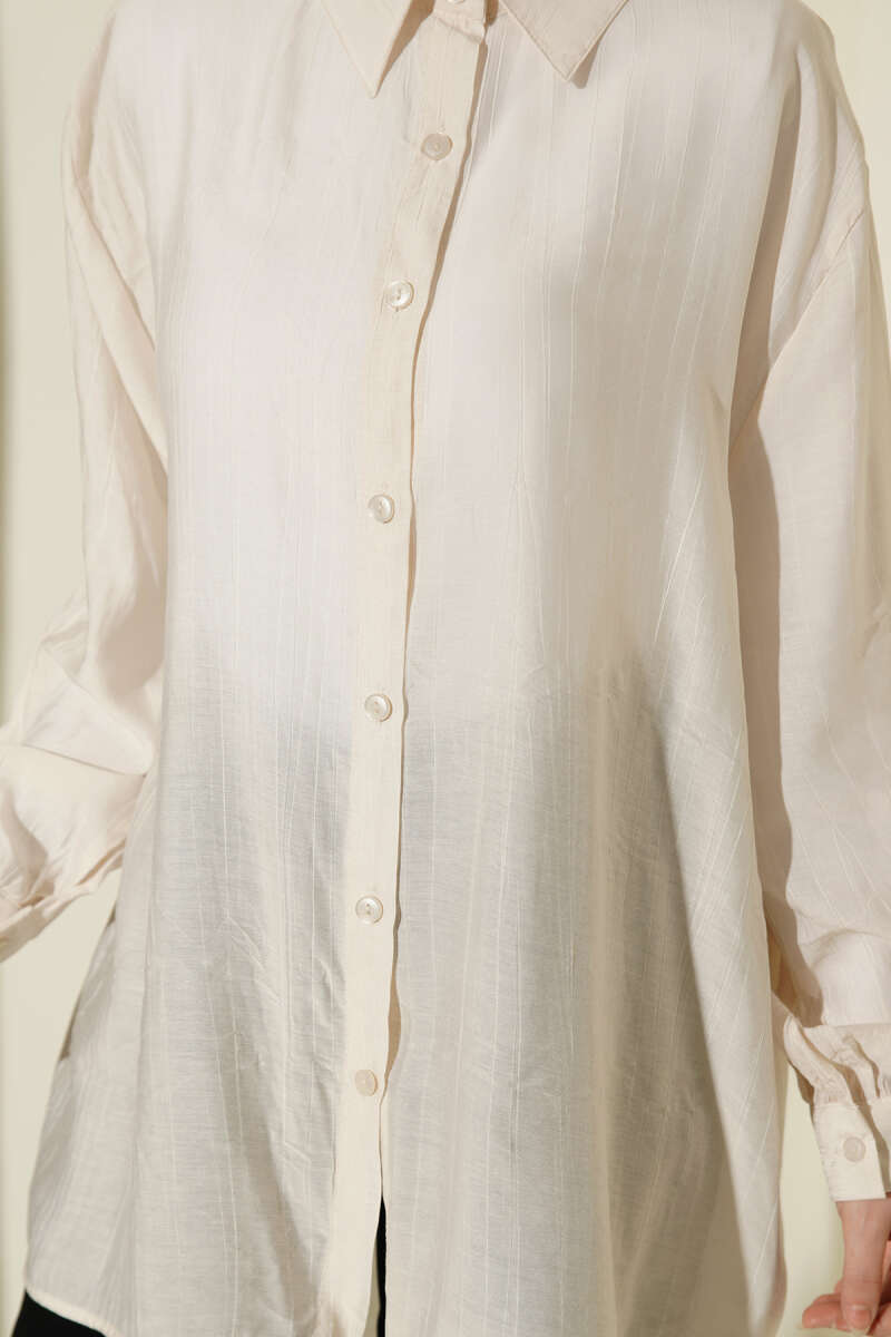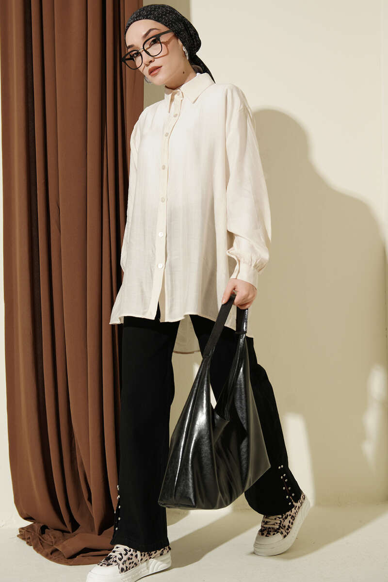 Kraşlı Oversize Gömlek Bej