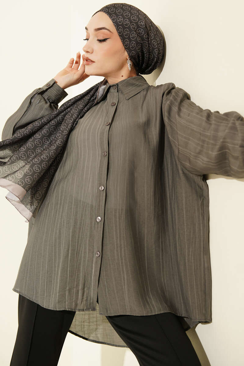 Kraşlı Oversize Gömlek, dökümlü kraş dokusu ve rahat kesimiyle hem çabasız hem de modern bir şıklık sunuyor. Kadın gömlek kategorisinin bu çok yönlü parçası; bej, füme, haki, indigo, pembe ve vizon gibi geniş renk seçenekleriyle her mevsim gardırobunuzun kurtarıcısı olmaya aday. Gün boyu konfor sağlayan oversize formu ve şık yaka detayıyla bu gömleği ister jeanlerle ister klasik pantolonlarla zahmetsizce kombinleyebilirsiniz.