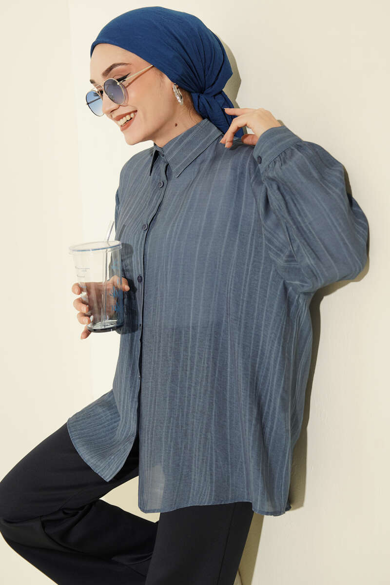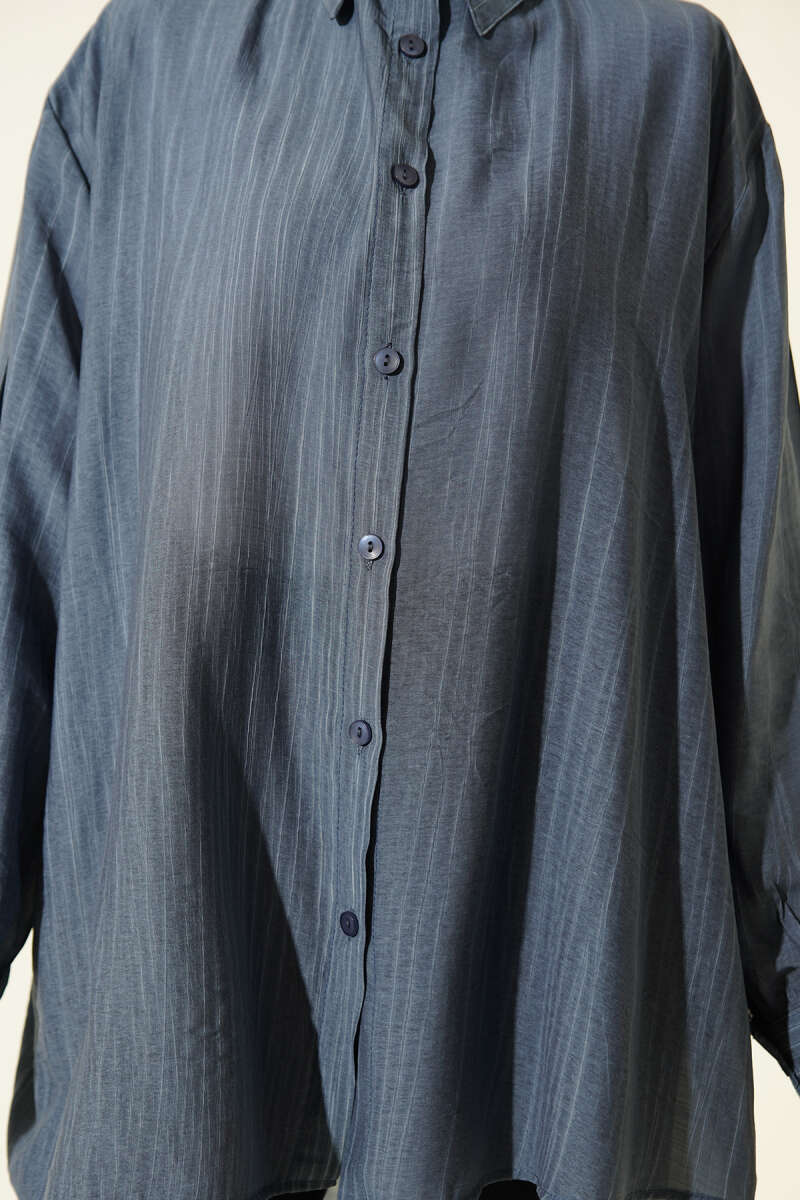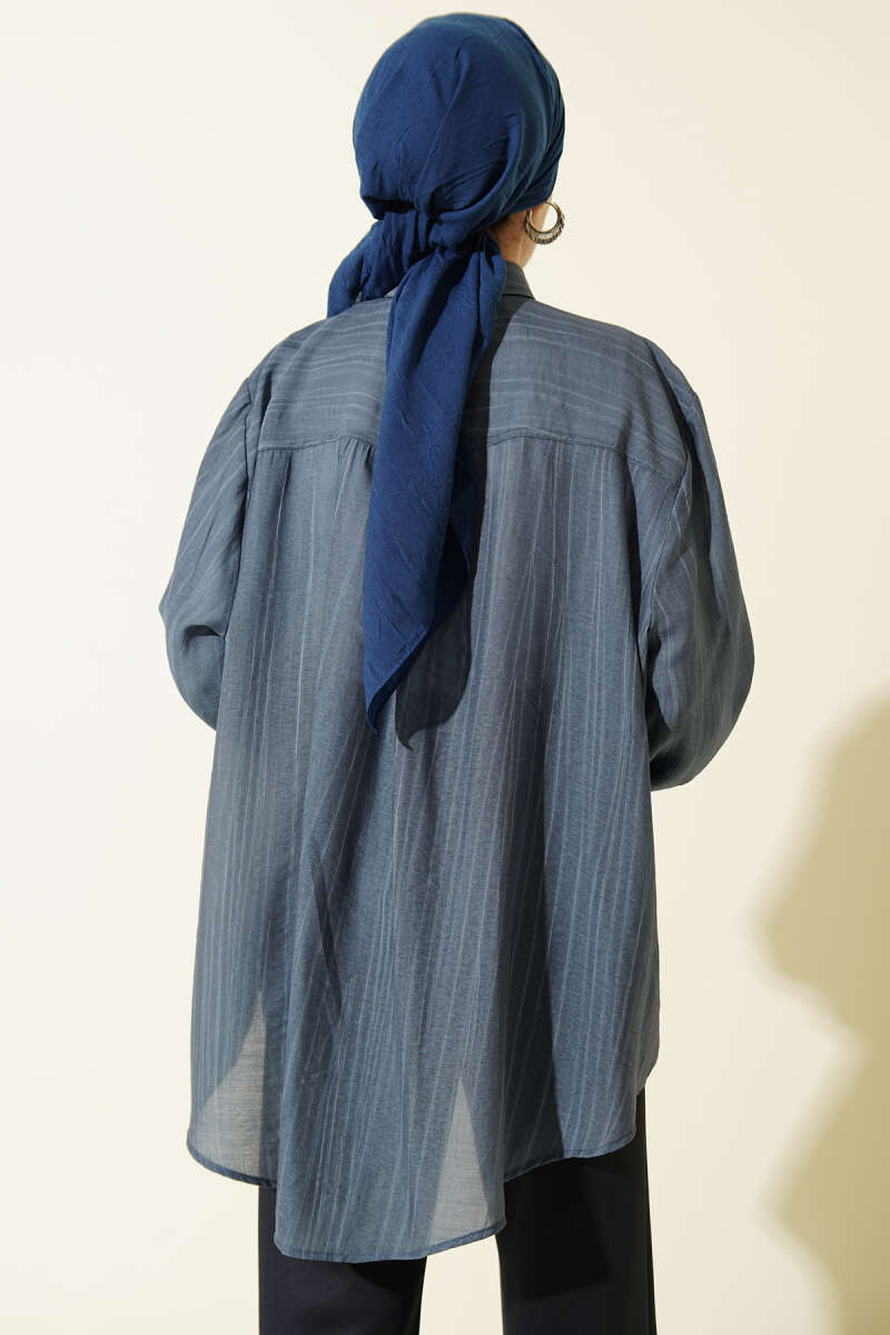 Kraşlı Oversize Gömlek İndigo