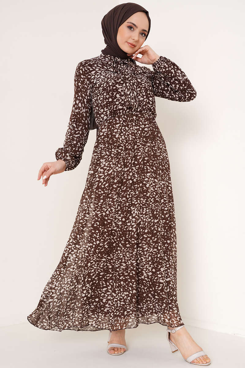 Yeni sezon model elbisemiz harika tasarımıyla dikkatleri üzerine çekmektedir. Elbisemizin yakası kravatlıdır. Şifondur. İçi astarlıdır. Piliselidir. Beli ve bilekleri lastiklidir. Her ortamda rahatlıkla giyebilirsiniz. Farklı renk seçenekleri mevcuttur.
