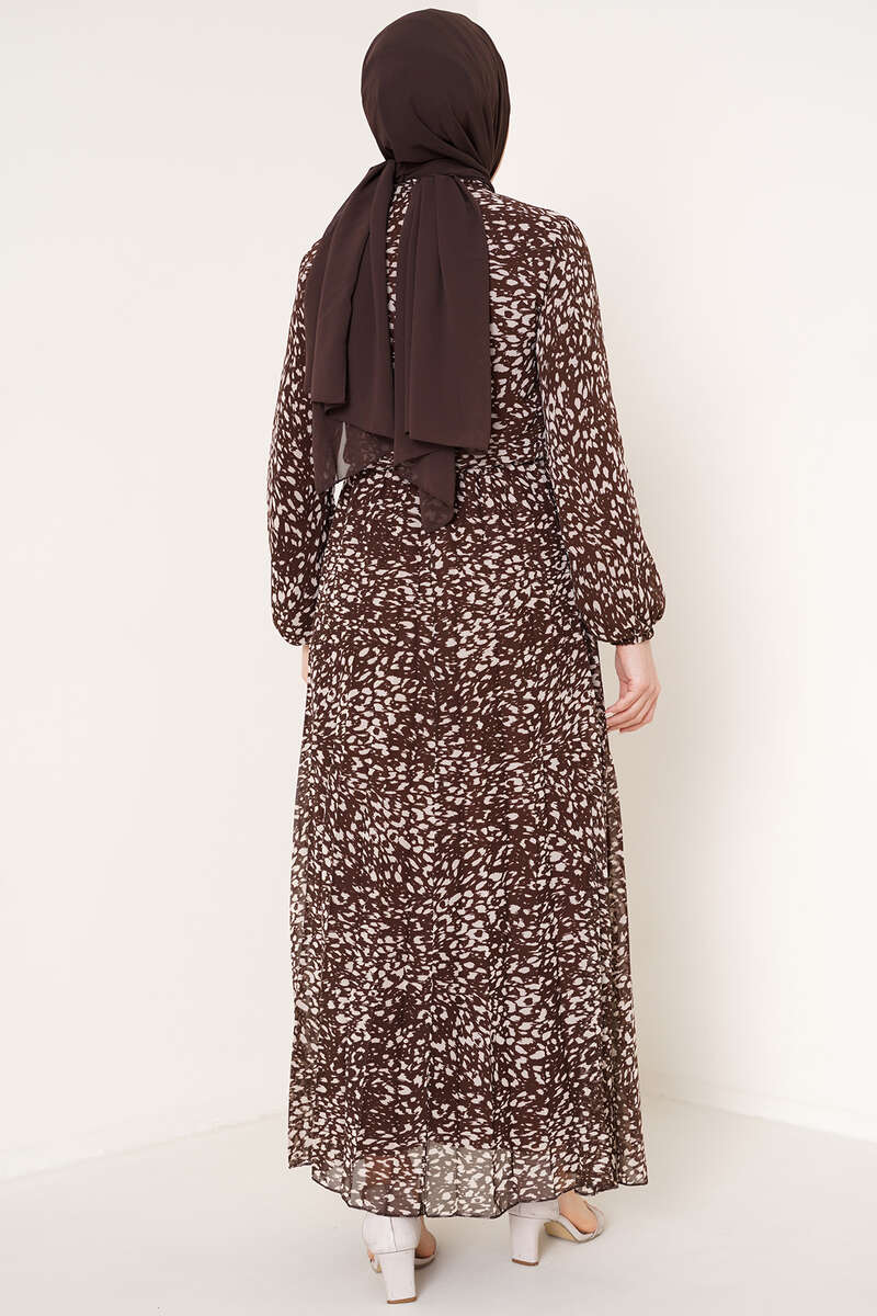 Bel Pensli İp Kuşaklı Elbise Kahve