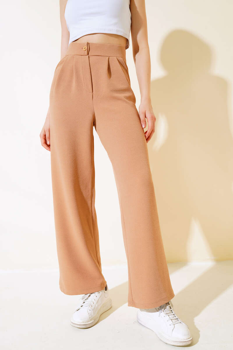 Yeni sezon pantolon modelimiz dikkat çekici tarzıyla çok beğeneceksiniz. Önü pileli pantolonumuz geniş paçadır. Krep kumaştır. İki adet cebi bulunmaktadır. Geniş paça pantolonumuzun renk seçenekleri bulunmaktadır.