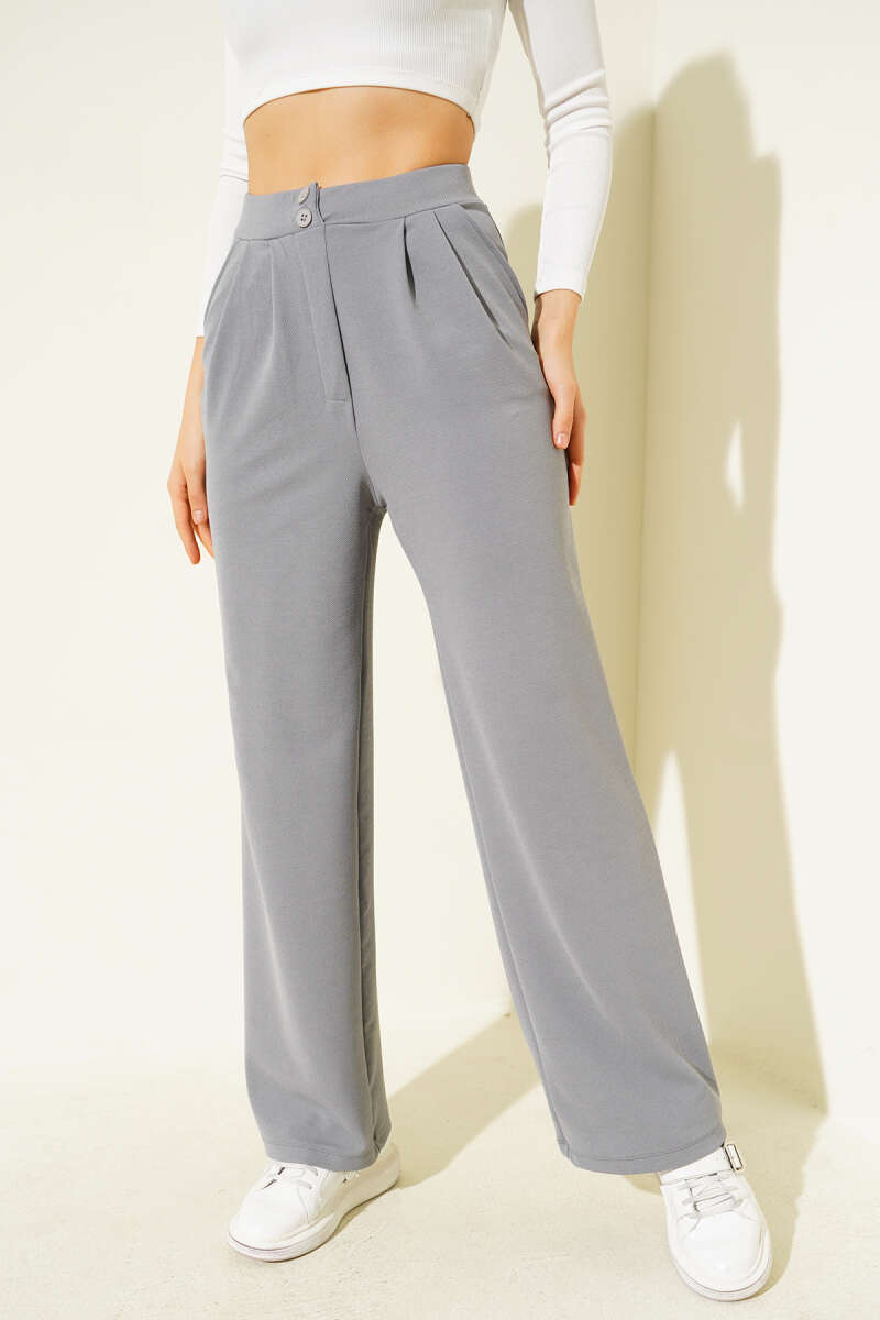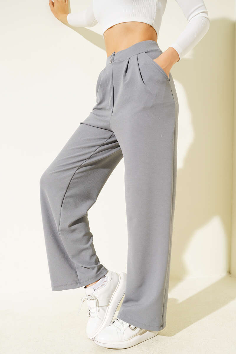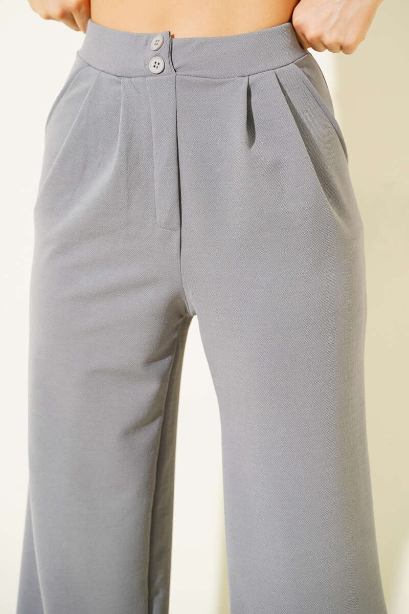Balıksırtı Kaşe Bol Paça Pantolon Antrasit