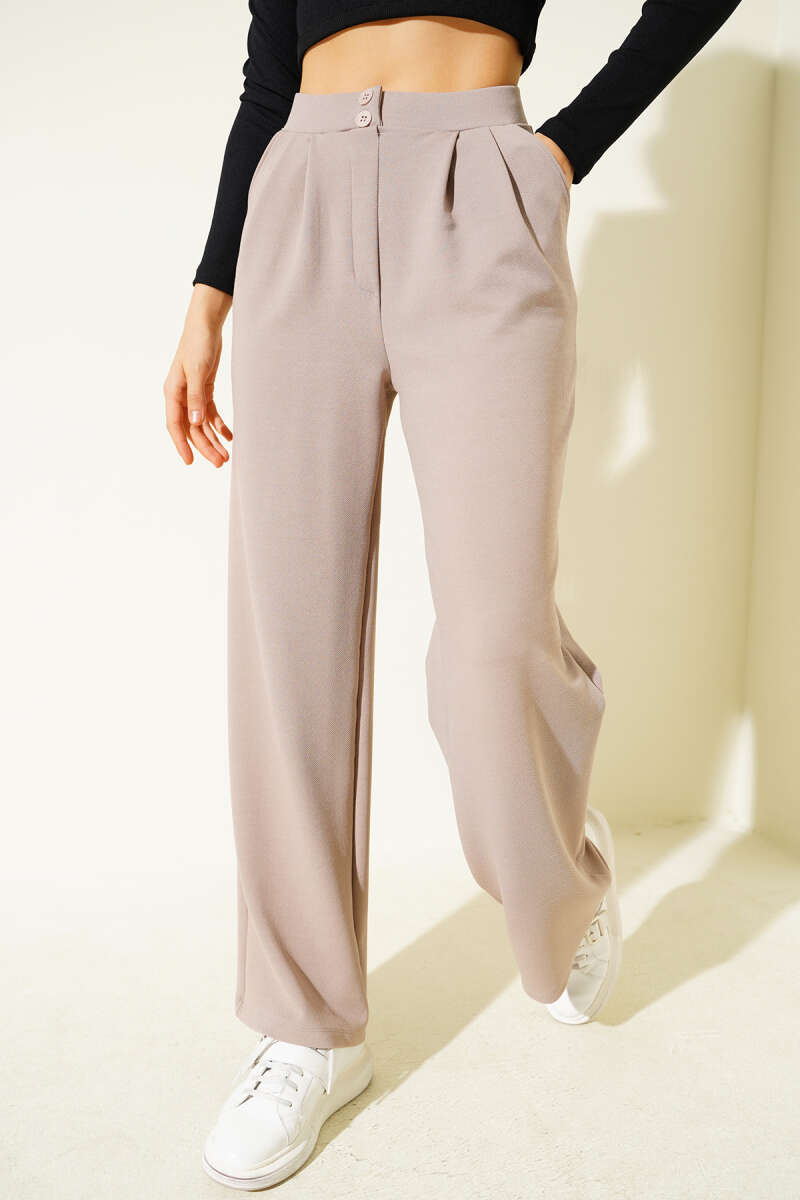 Çımalı Bel Fermuarlı Pantolon Bordo