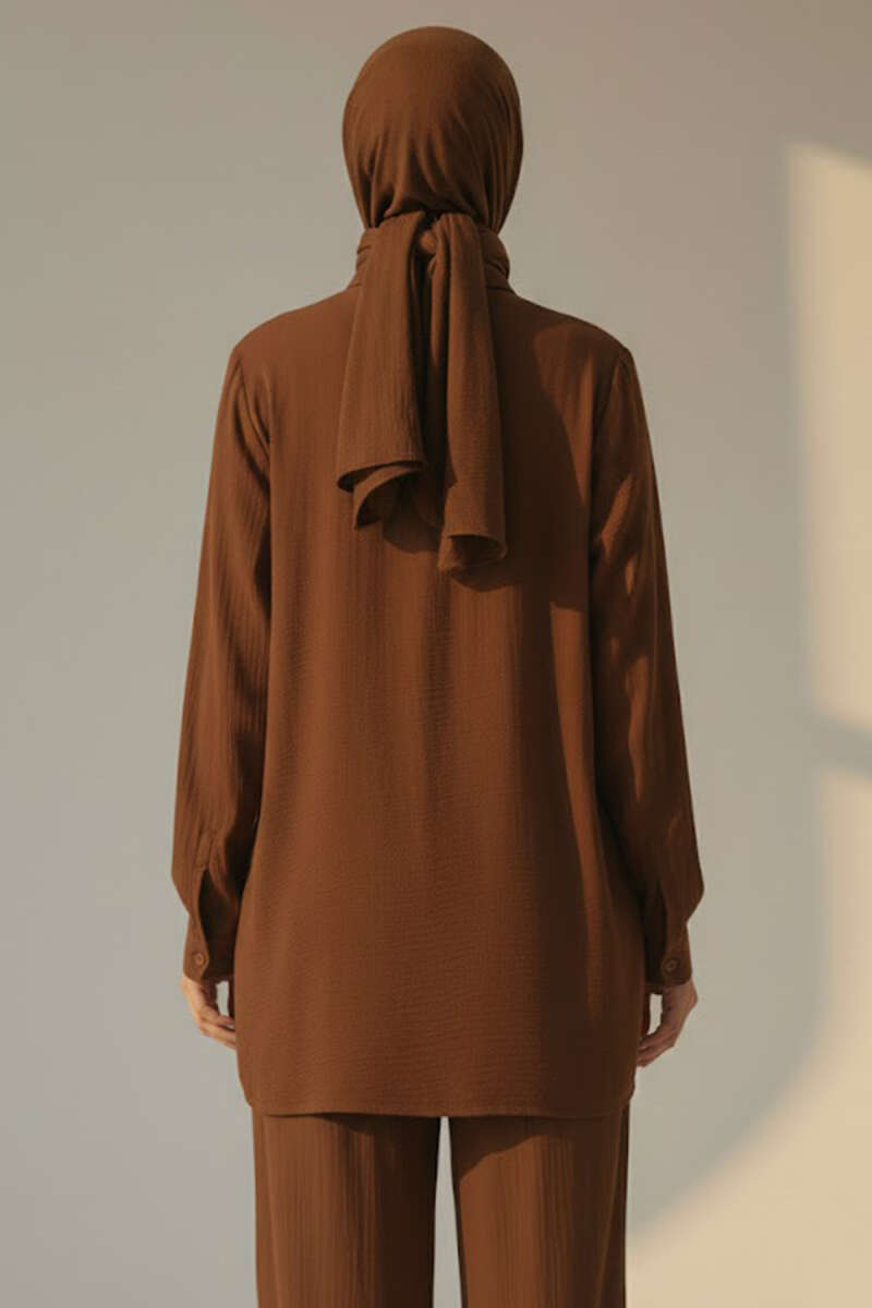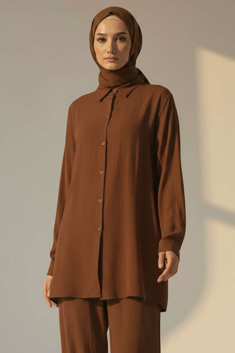 Krinkıl Görünümlü Düğmeli Takım Taba