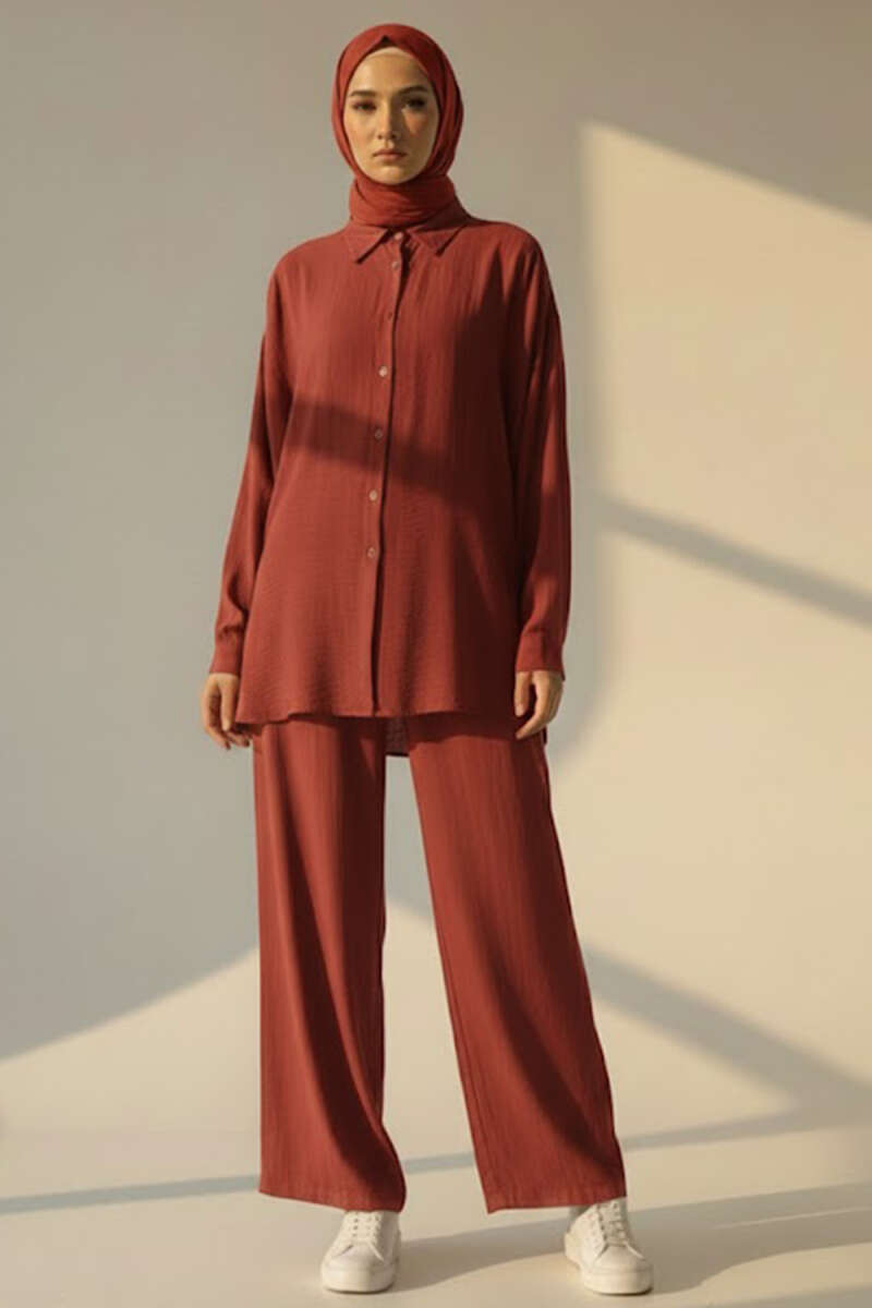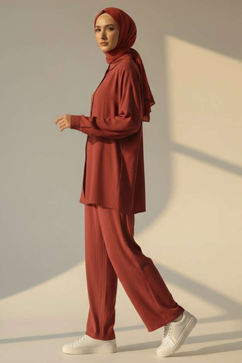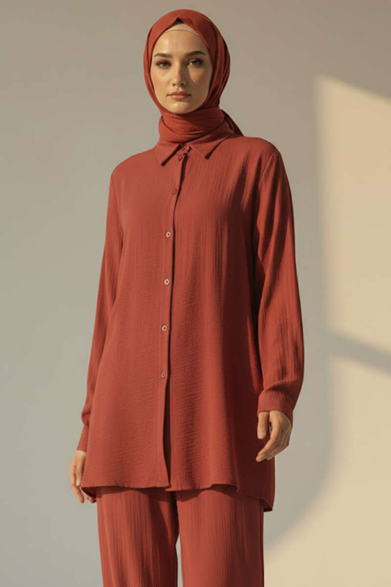 Krinkıl Görünümlü Düğmeli Takım Tarçın