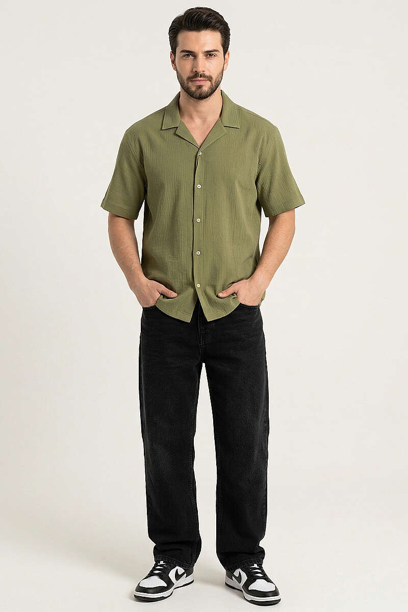 Yatay İnce Çizgili Ribanalı Tunik Yeşil