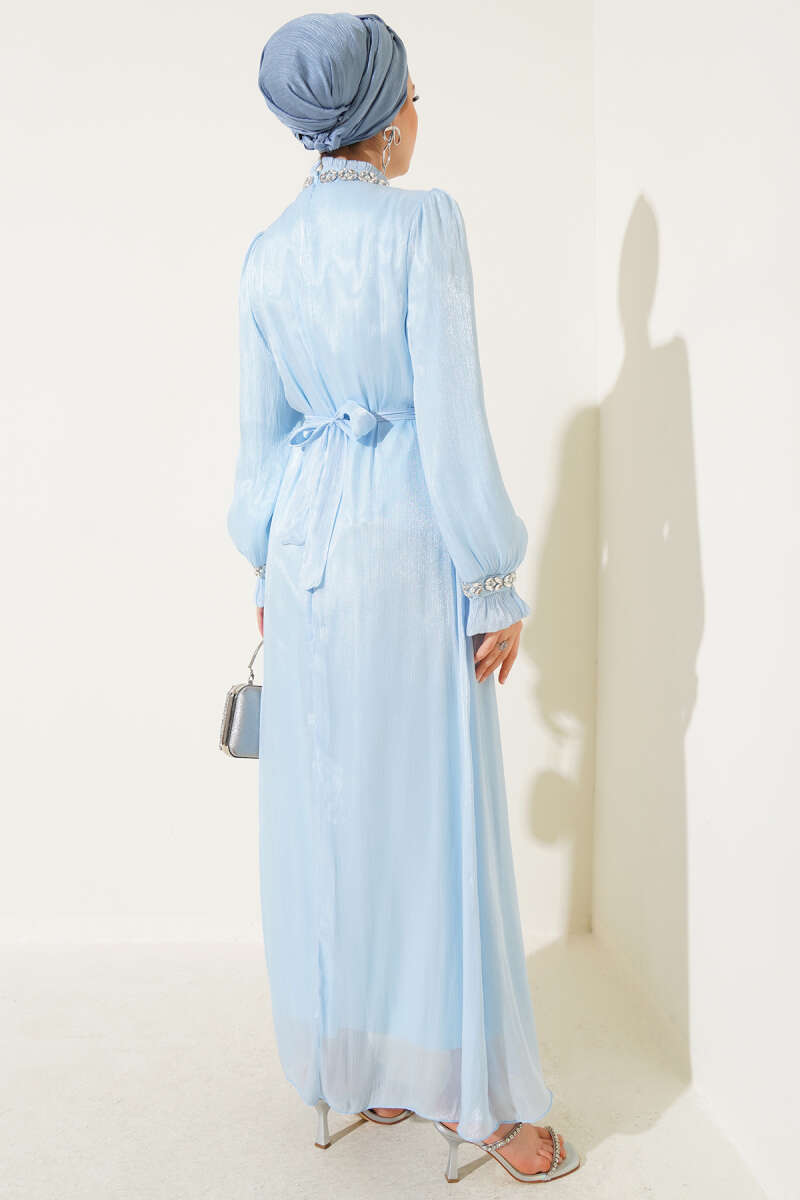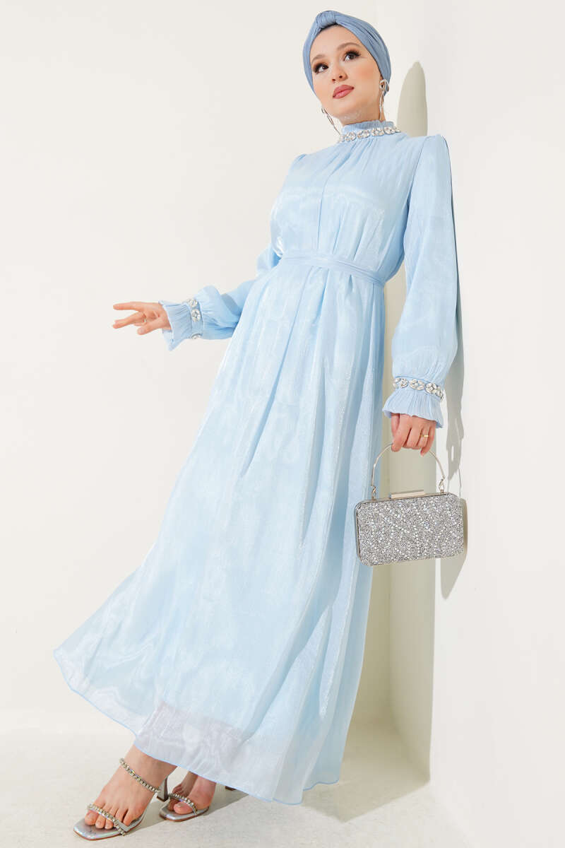 Bilek Bağlamalı Kuşaklı Abiye Elbise Lacivert