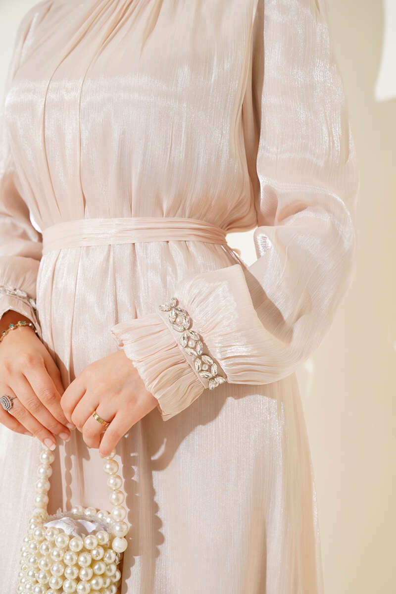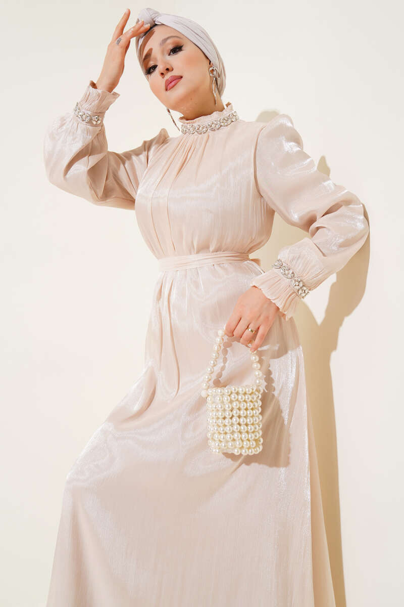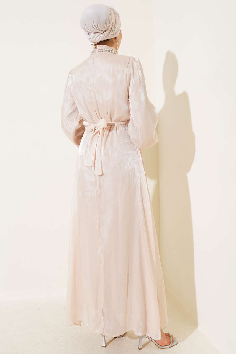 Bilek Bağlamalı Kuşaklı Abiye Elbise Haki