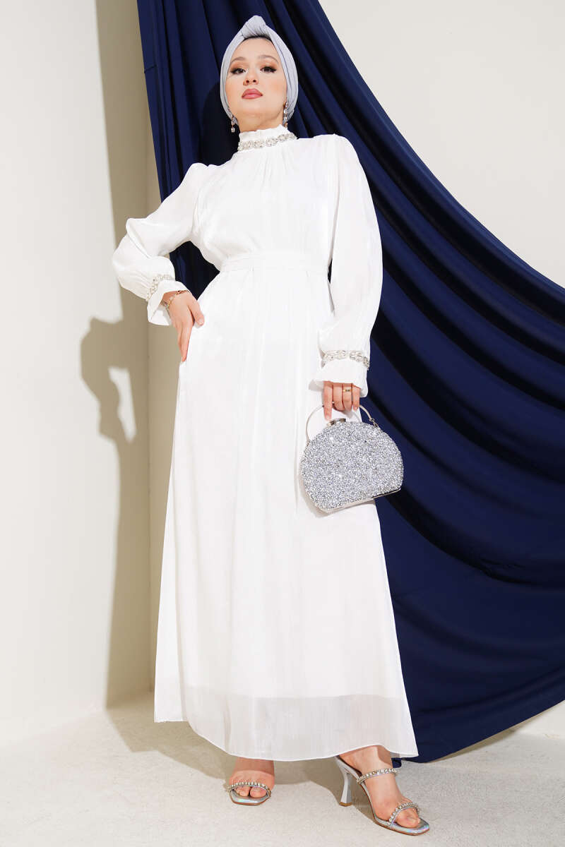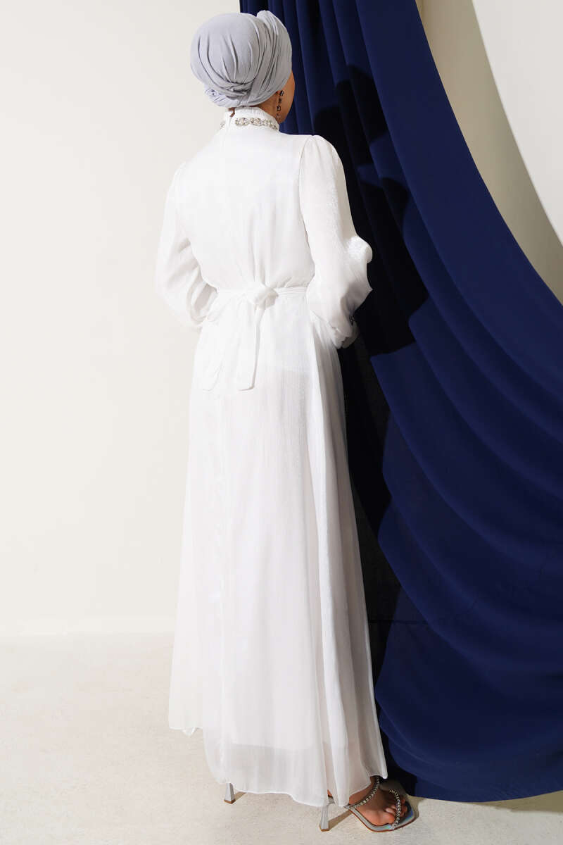 Pelerin Detaylı Pul Payet Abiye Elbise Haki