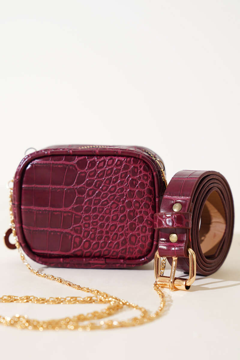 Kroko Desen Vişne Bel Çantası