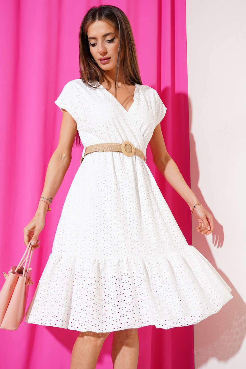 Kruvaze Brodeli Elbise Ekru