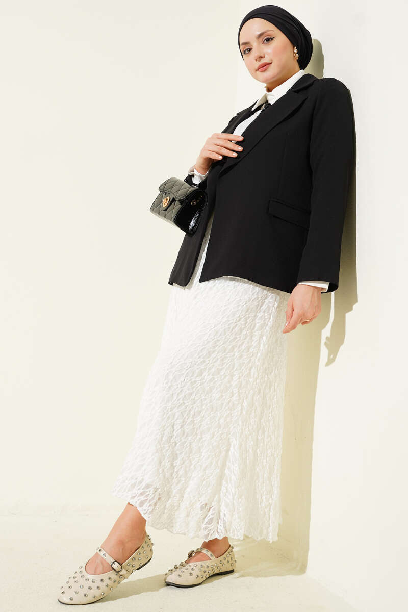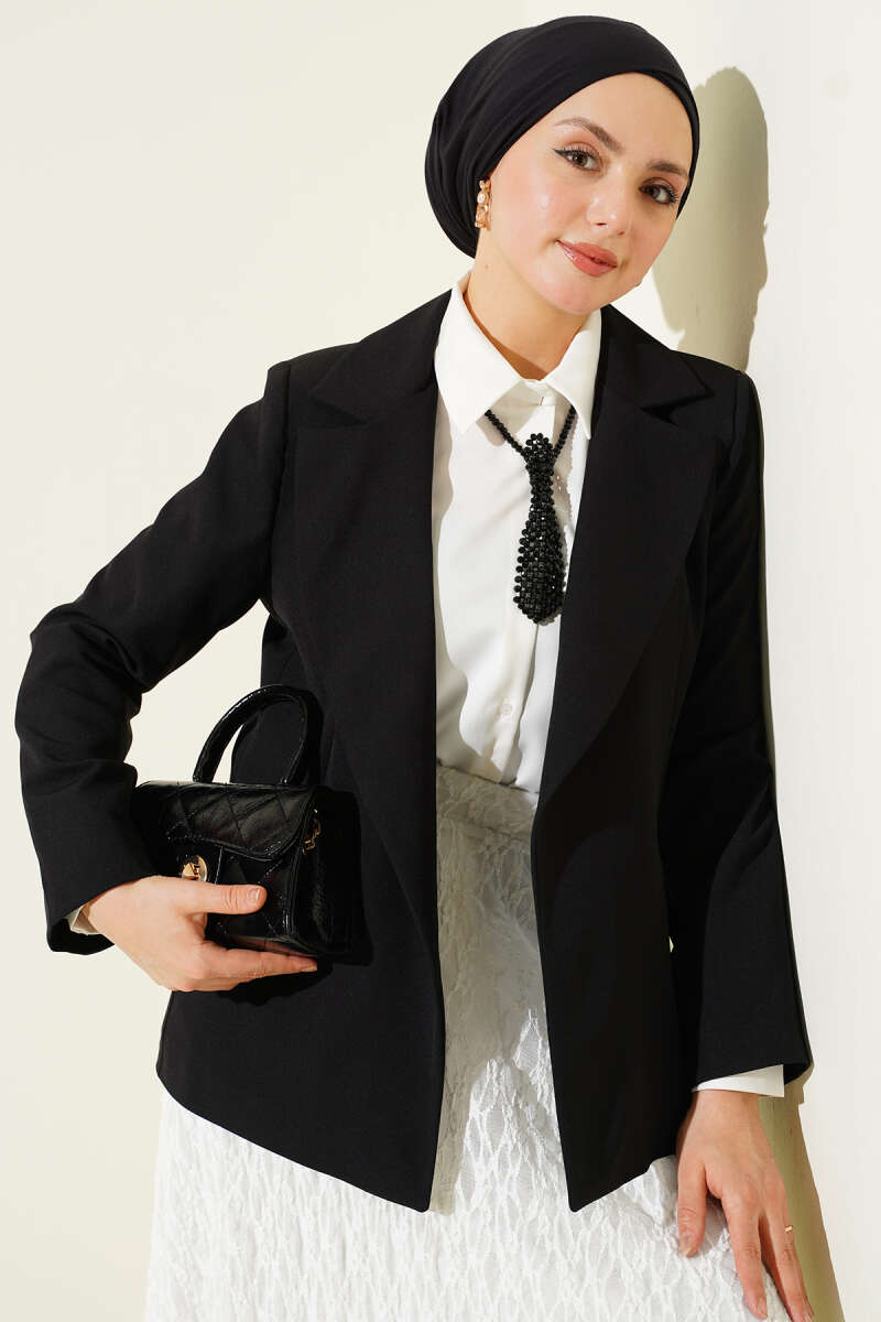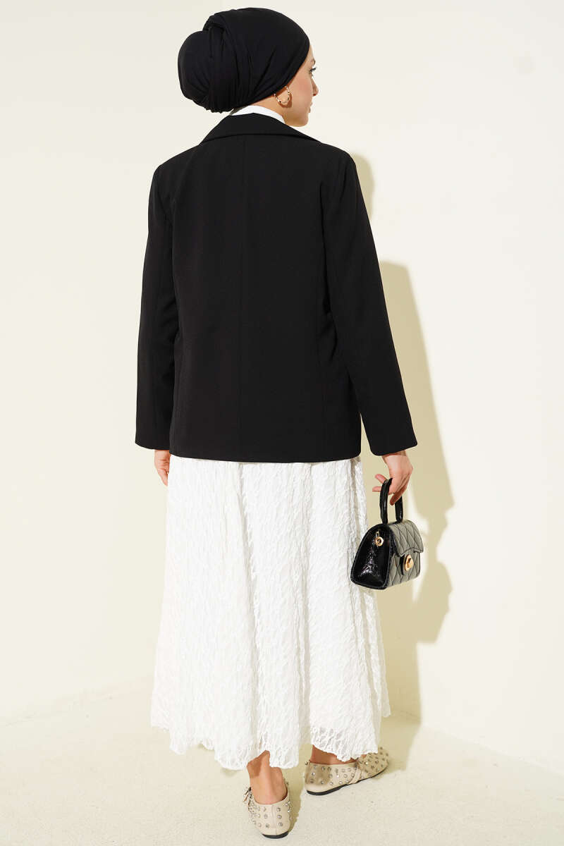 Kruvaze Çizgi Astarlı Blazer Ceket Siyah