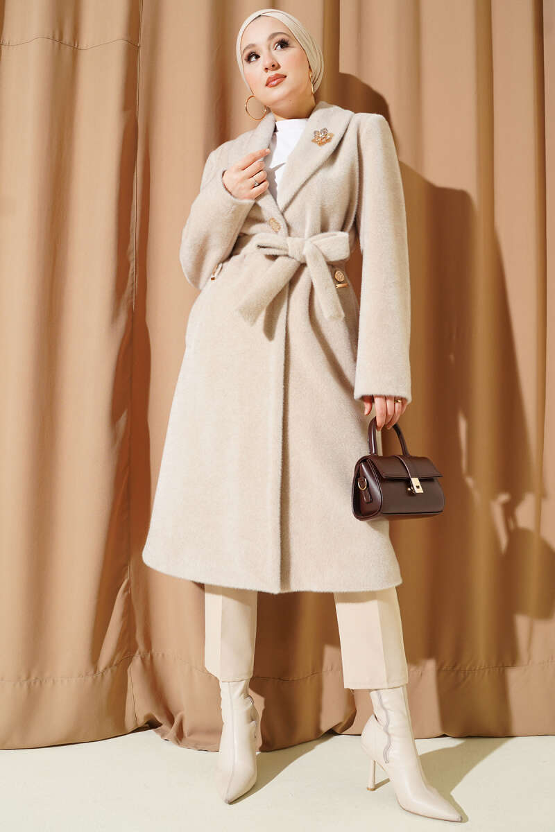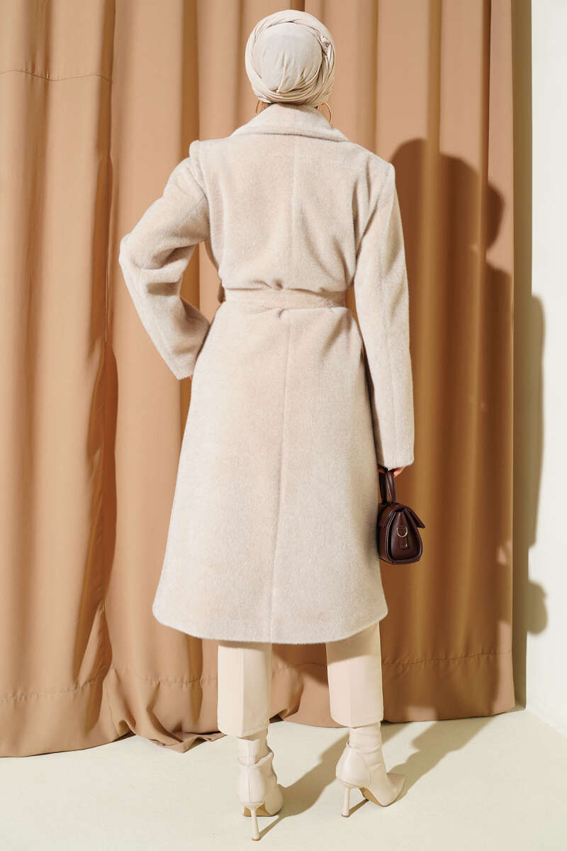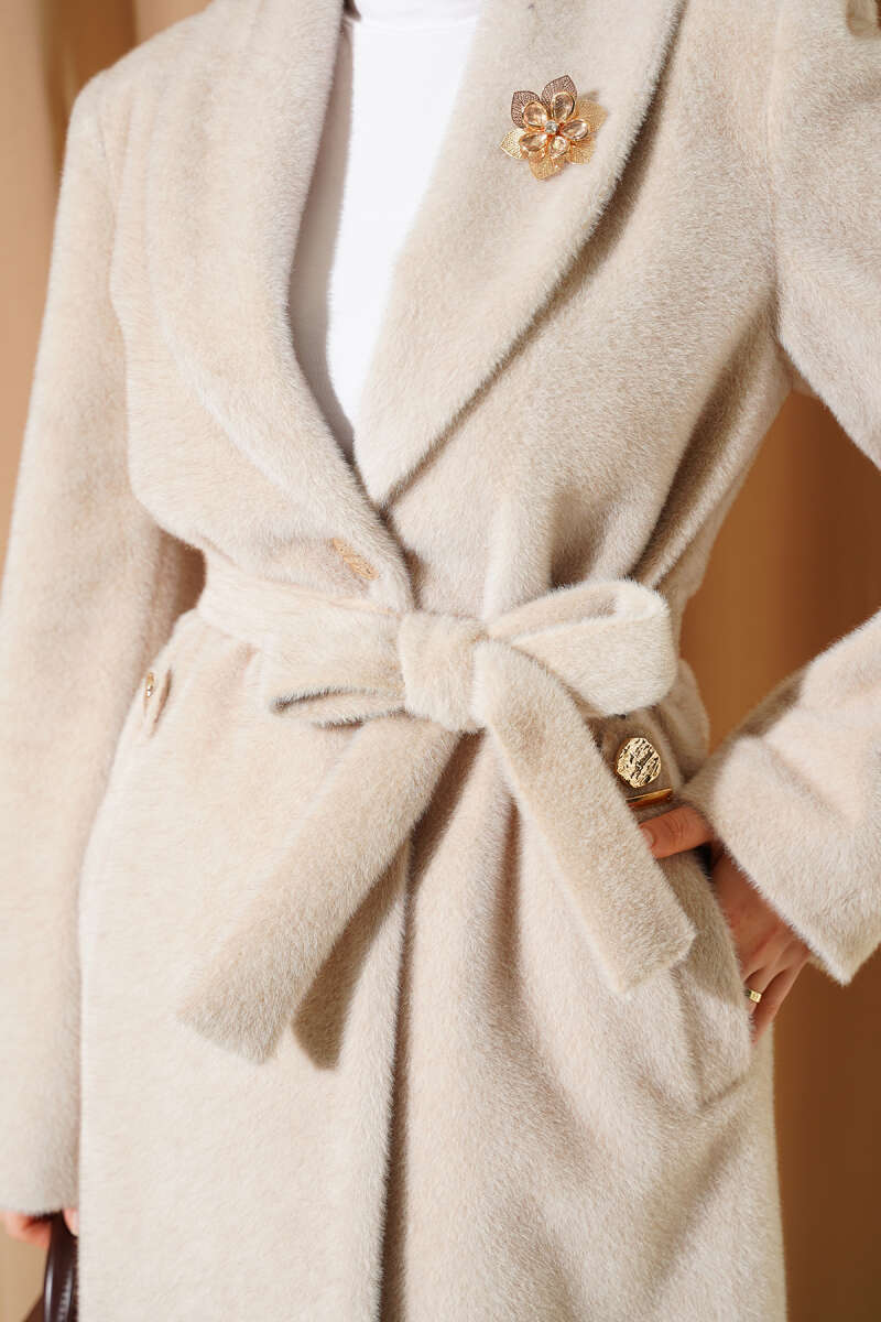 Kruvaze Yaka Uzun Kaşe Kaban Vizon