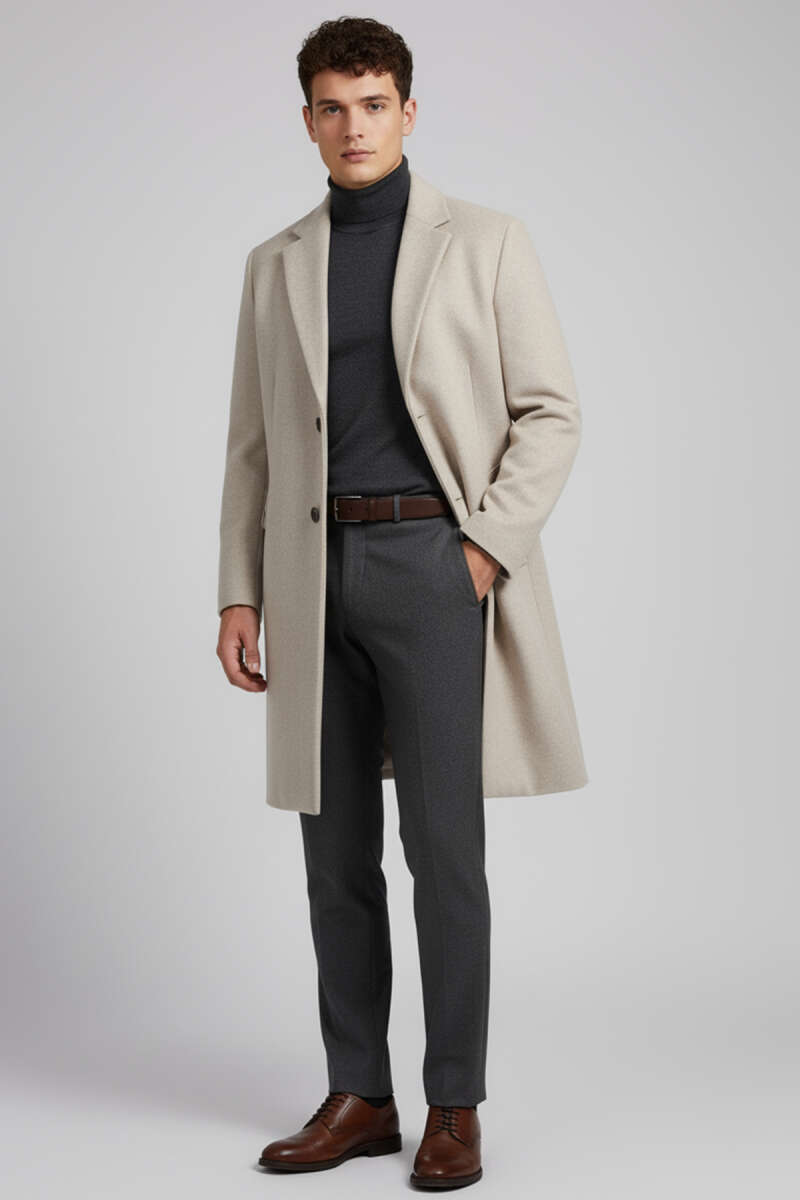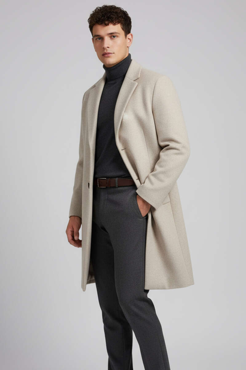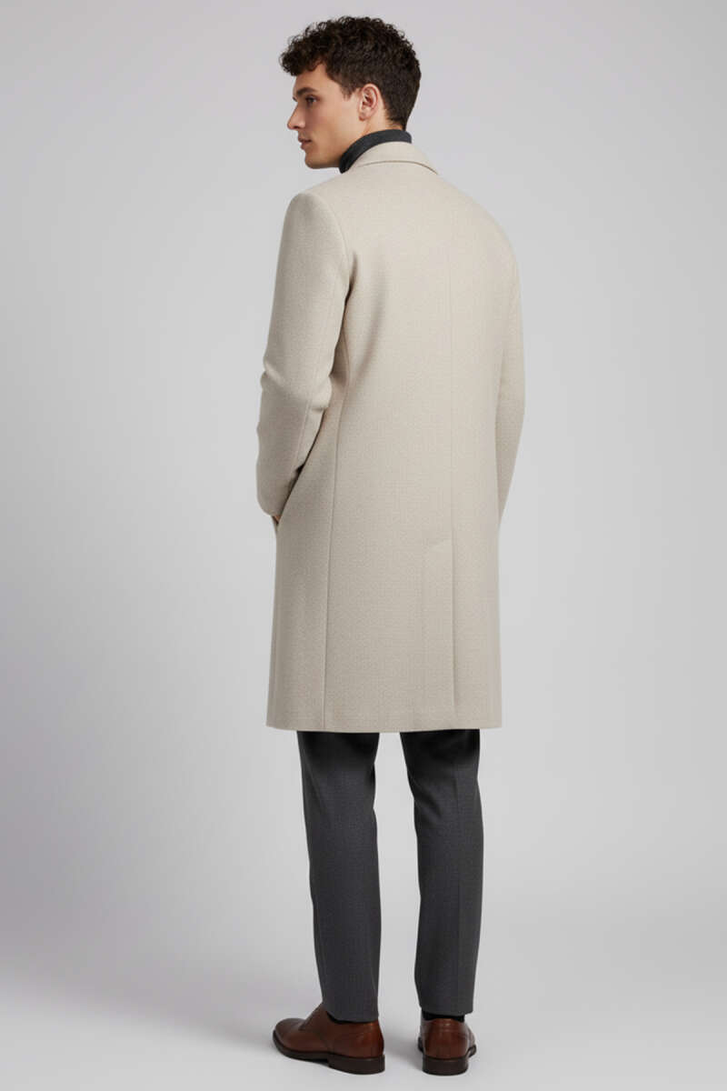 Kruvaze İki Düğmeli Erkek Kaşe Kaban Siyah