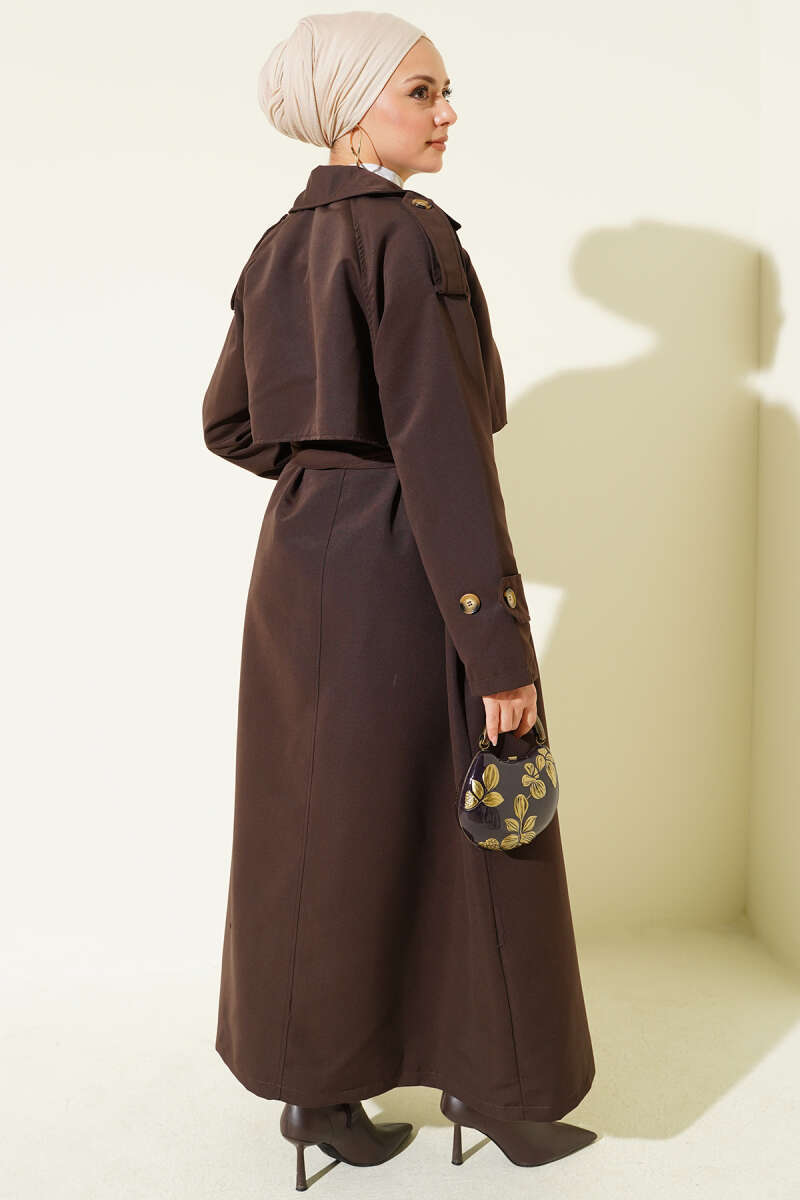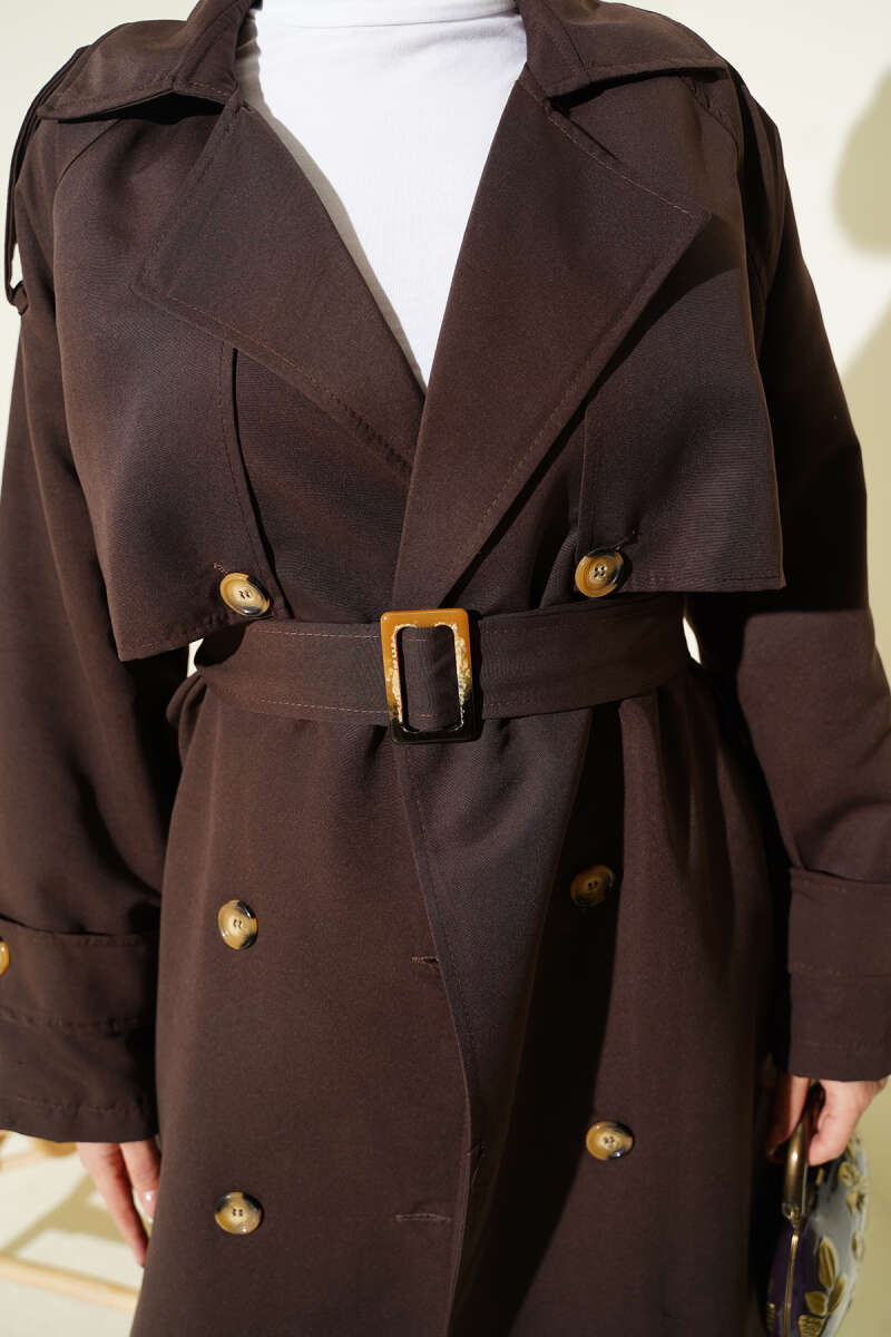 Kruvaze Yaka Bel Bağlamalı Kot Trençkot Füme